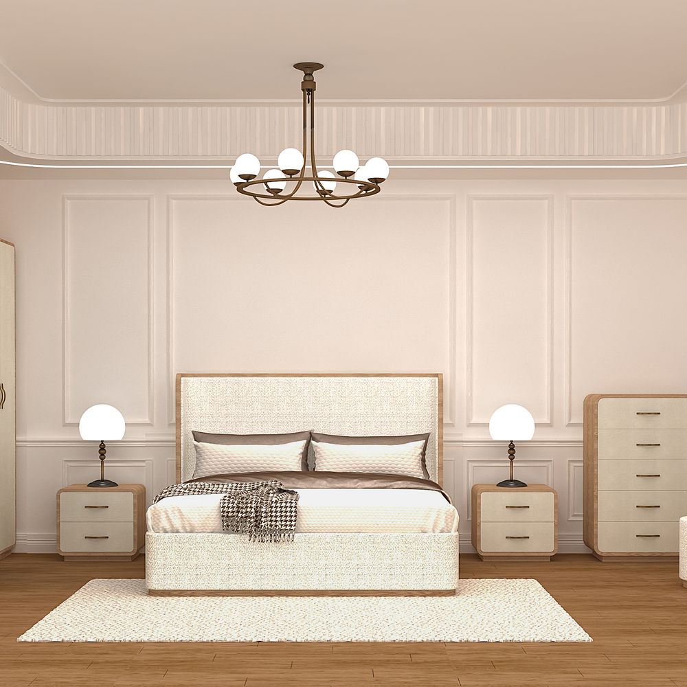Nordomi 200X200 Upholstered Super King Bed w/ Solid Wood Frame -Beige/Natural