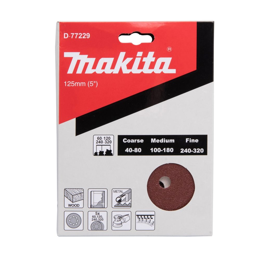 The product NS LP MAKITA Abrasive Paper Assortment (20Pcs/Set) Size: 125Mm Grit: 60,120,240,320 D-77229 images have props used for illustrative purposes. Product Color may vary slightly due to photographic lighting or your screen settings.