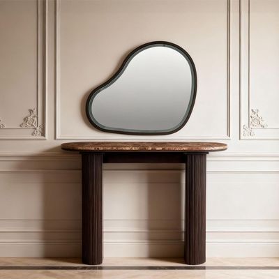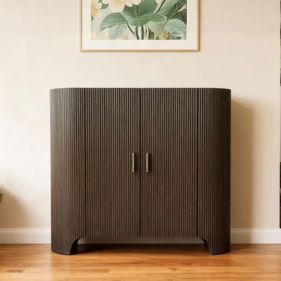 Oboro 2 Doors Marble Top Cabinet -Brown Pattern/D.Walnut
