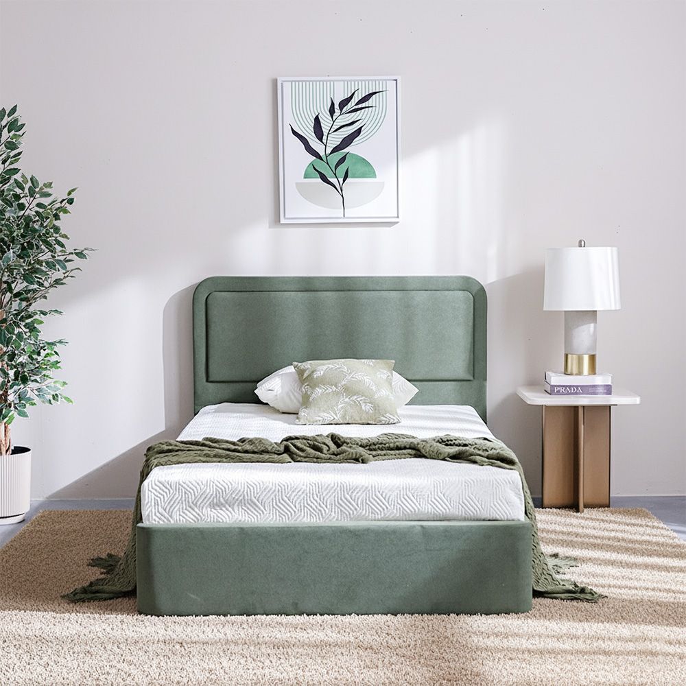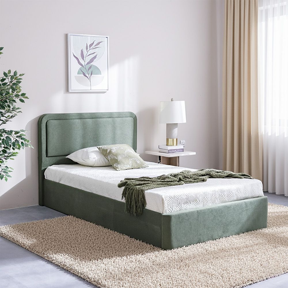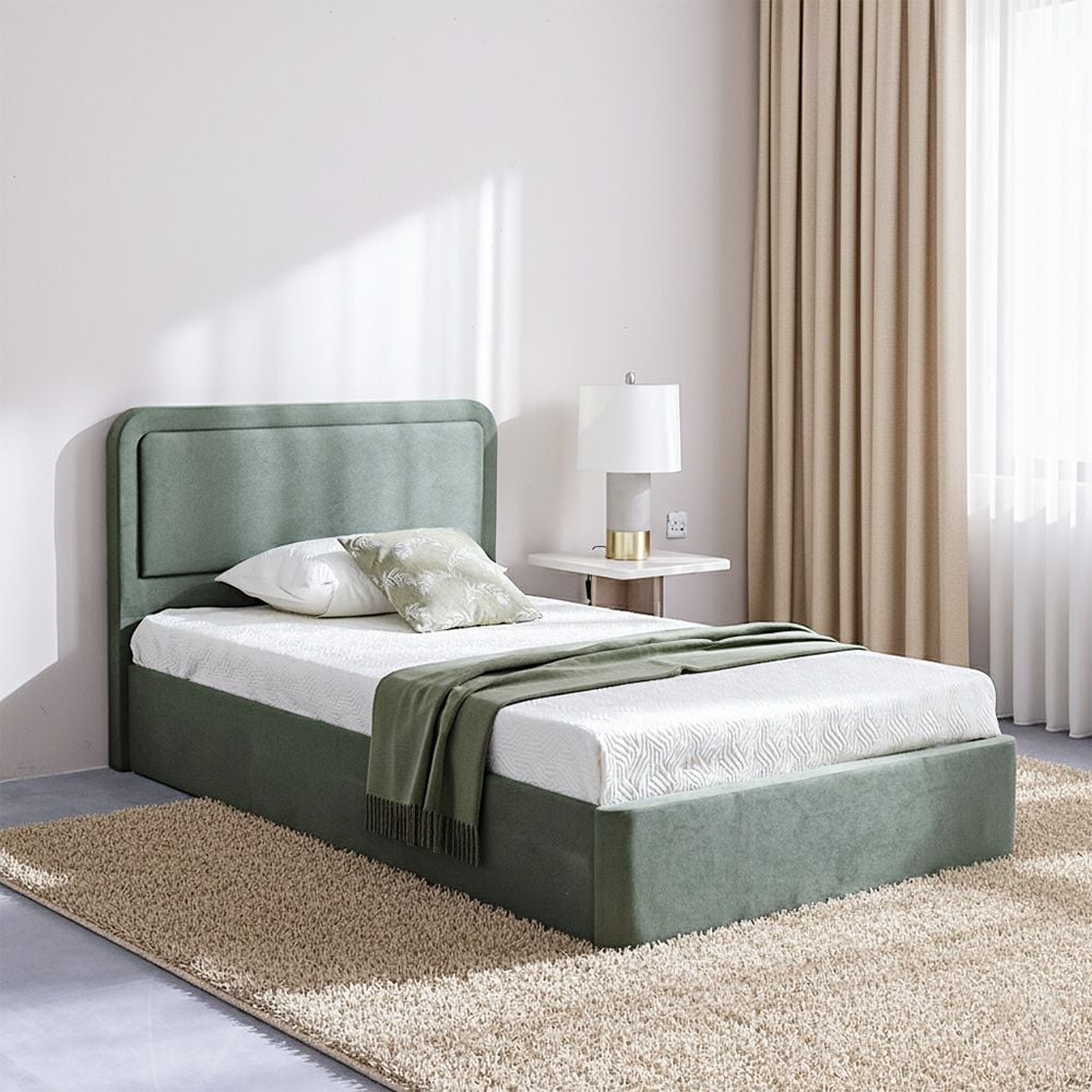 Olive 120x200 Upholstered Single Bed-Olive Green