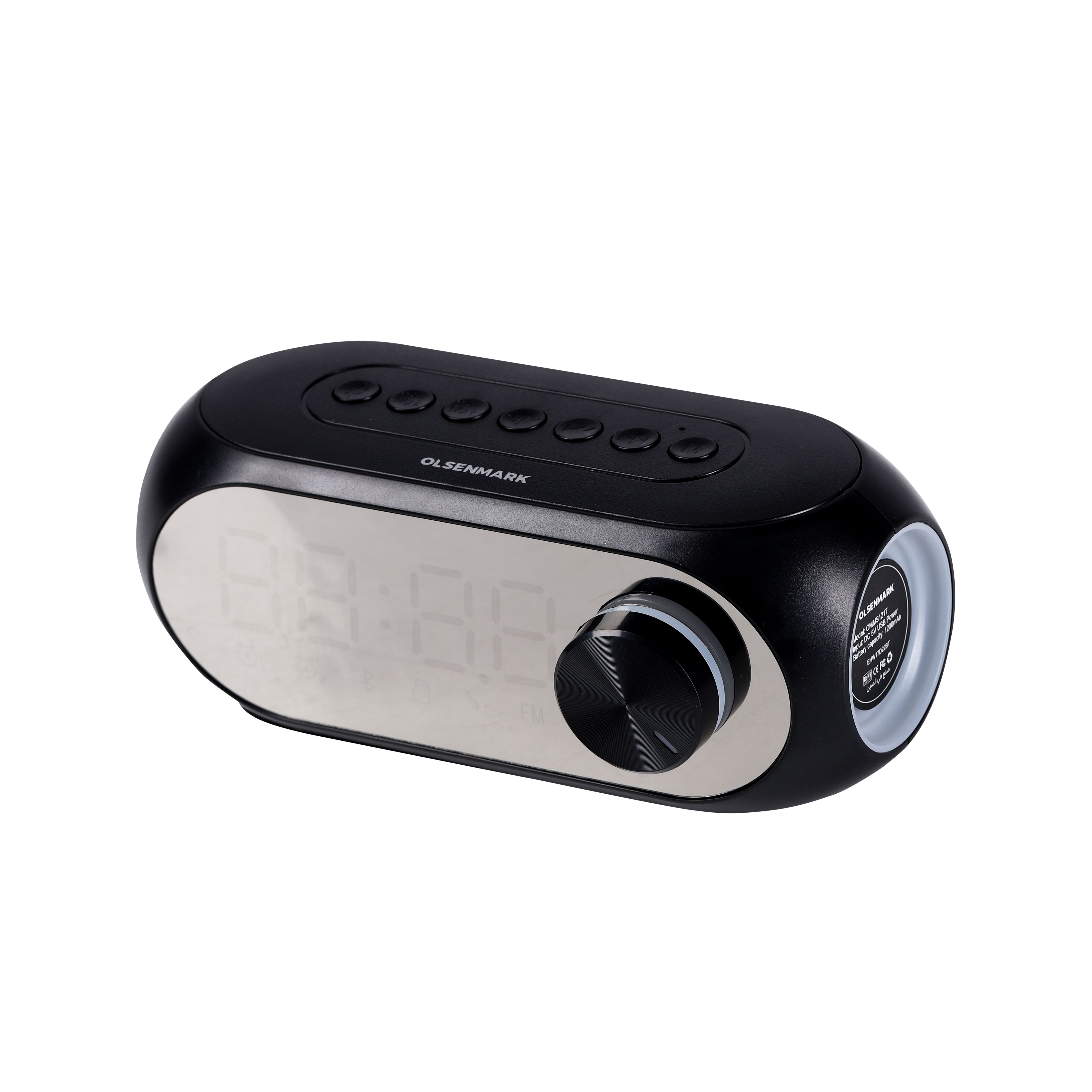 Olsenmark OMMS1217 Portable Speaker with Digital Alarm Clock | Bluetooth, AUX, TF Card, FM, SD/USB Functions| Double Alarm Clock, Digital Time Display, Light Control| Play/Pause, Previous/Next, Mode, Master Volume Control| 2 Years Warranty| Black