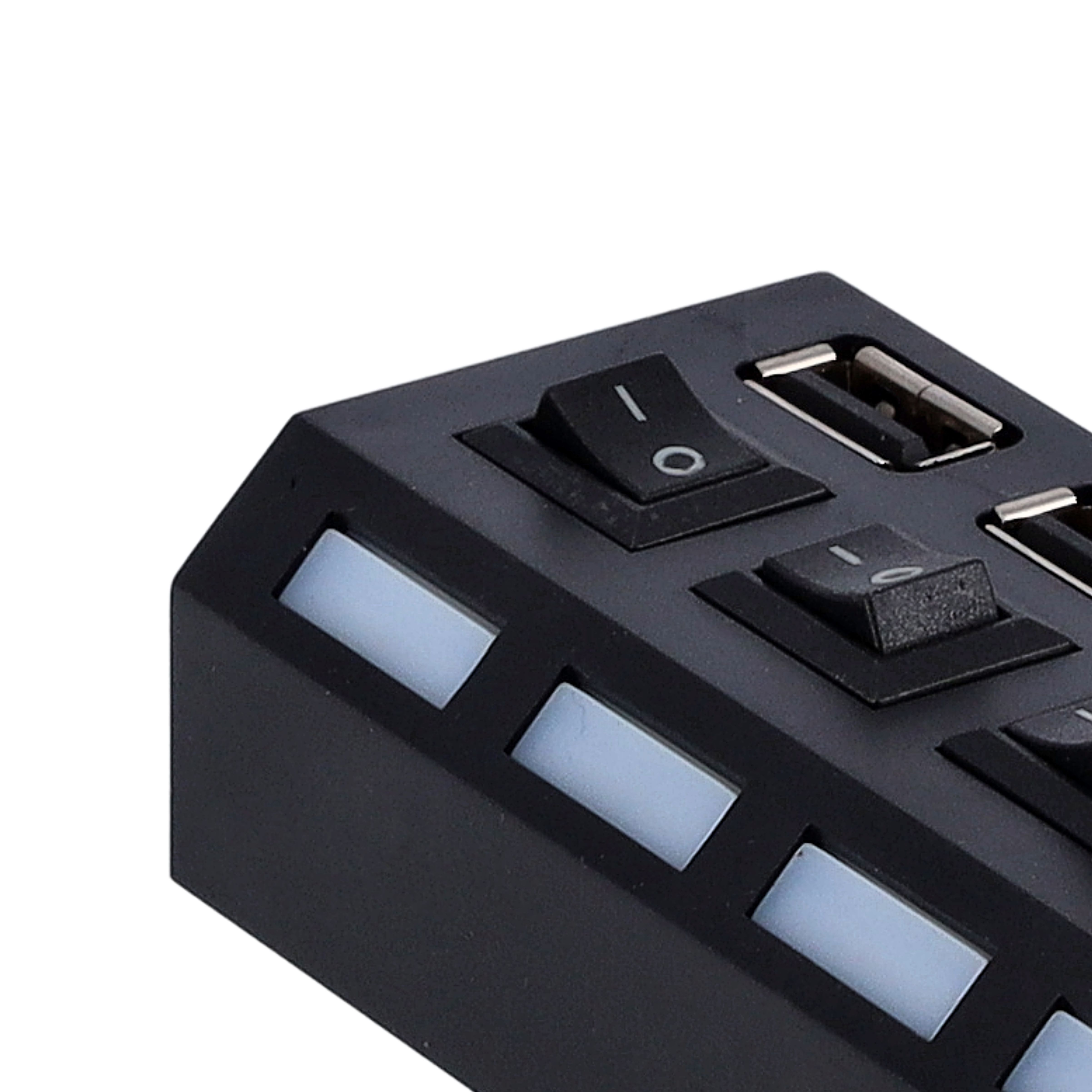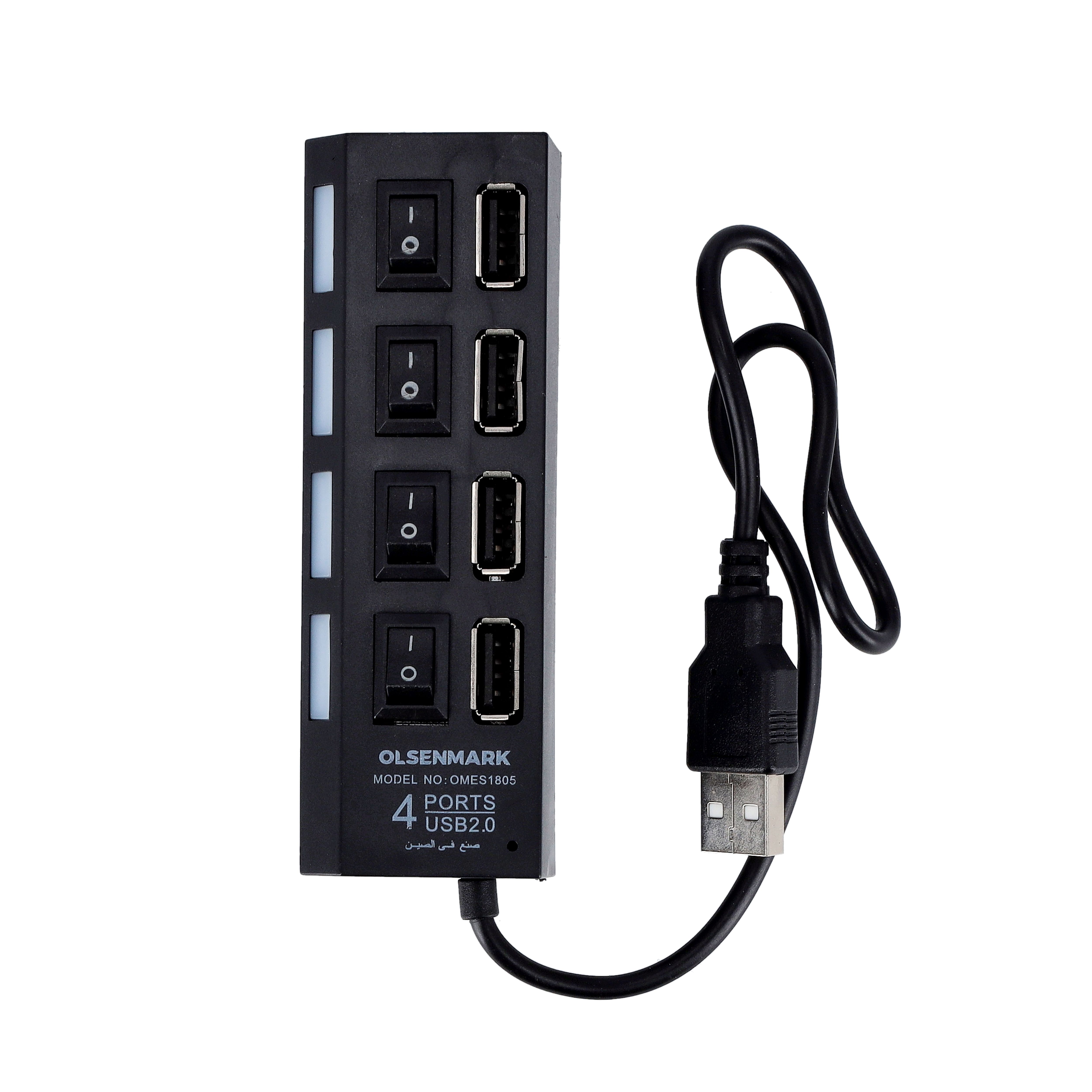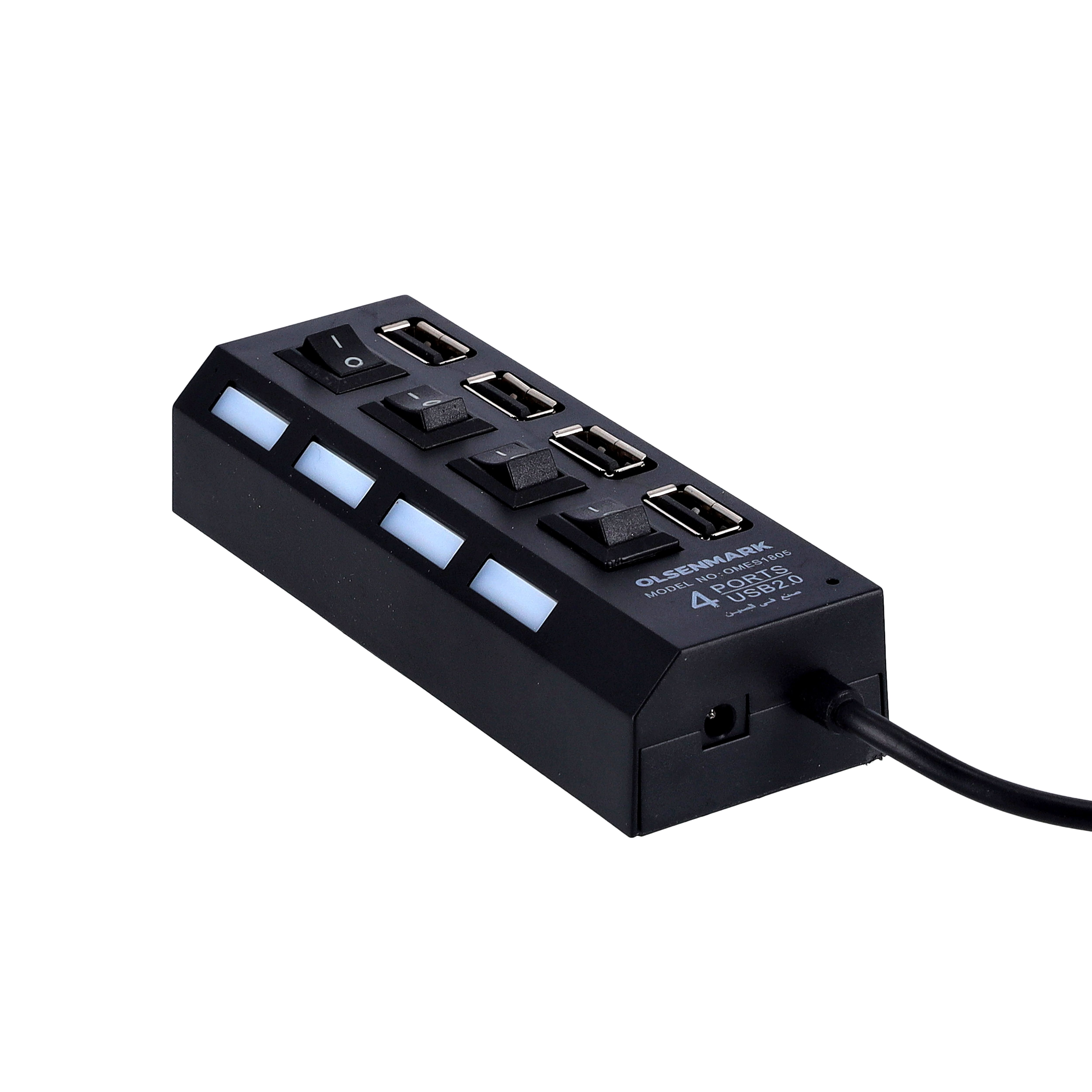 The product Olsenmark USB 2.0 Super Hub - Supports 500GB, 4 Port with Individual On/Off Switches & Indicator Lights | Ideal for Windows, Mac, Linux, PC, and Laptop images have props used for illustrative purposes. Product Color may vary slightly due to photographic lighting or your screen settings.