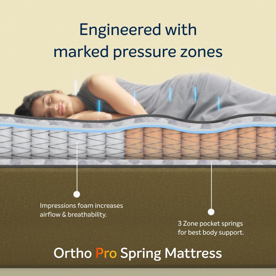 Ortho Pro Spring King Bed Size Impressions Memory Foam Mattress With Airvent Technology And 3-Zone Pocket Spring White -190x 180x 20 cm