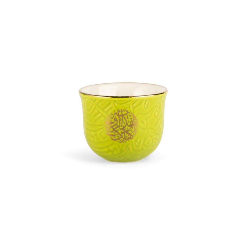 - It consists of 6 cups and 6 plates, in addition to 6 Arabian coffee cups and a sugar bowl, with a design decorated with the original Arabic letters design..