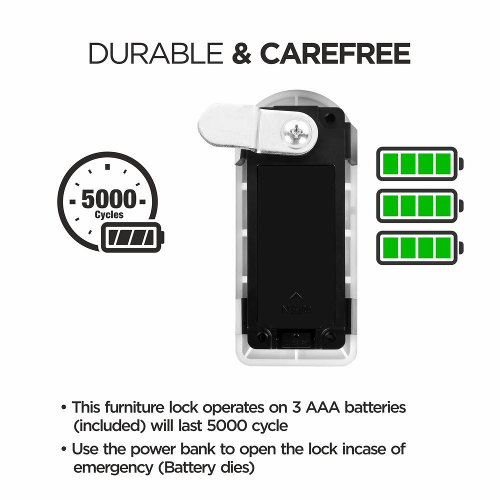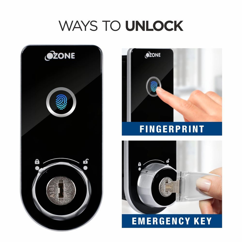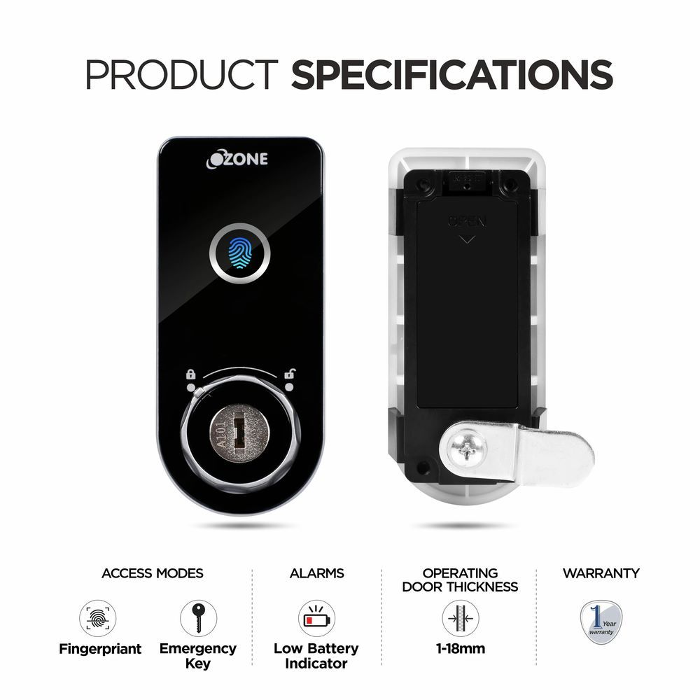 Ozone OZFL-302-FK Rectangular and Handy, Fingerprint and Key Access, Manual Locking System, Smart Furniture Lock - Black & Silver