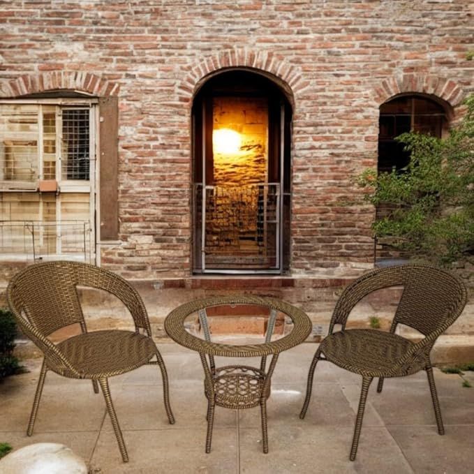 This 3-piece patio rattan outdoor dining set is a stylish and practical way to enhance your indoor or outdoor spaces