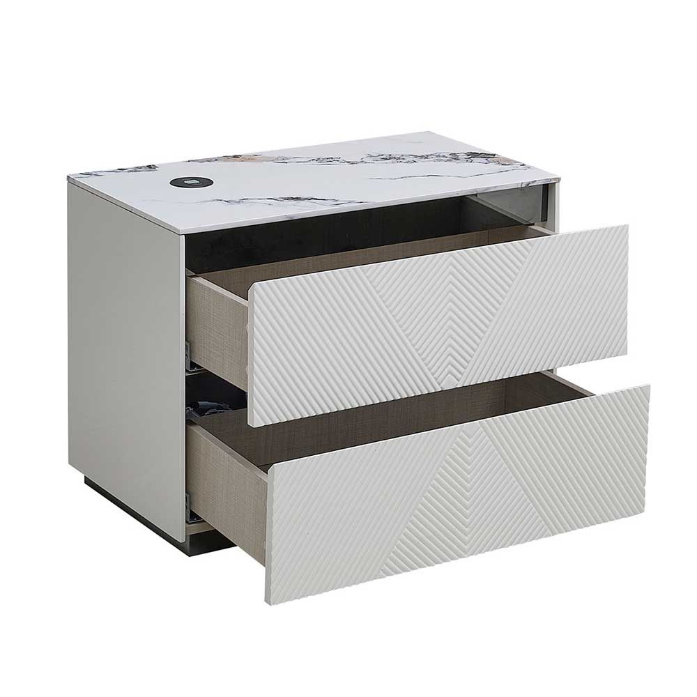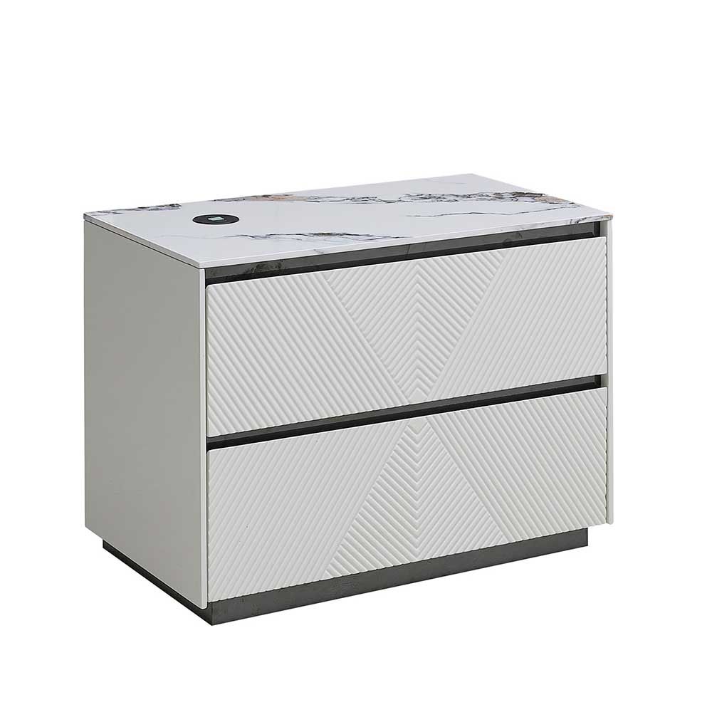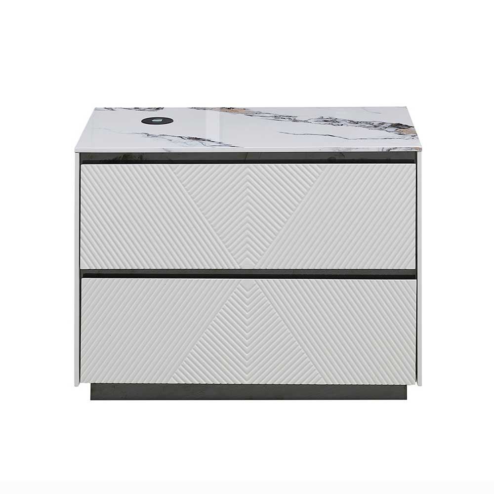 Petruci Night Stand with USB charger - White/Black - With 2-Year Warranty