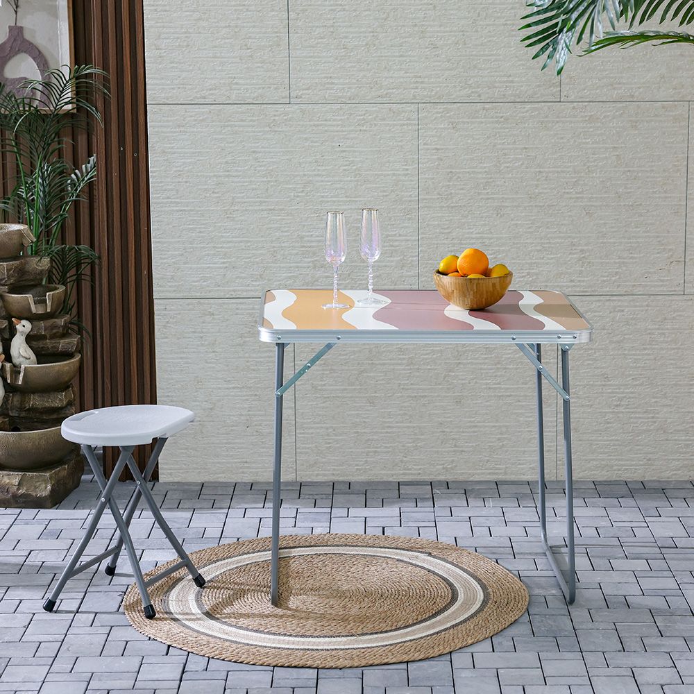 Picnic Folding Table 80X60X70Cm Marble Finish - Muted Desert Waves