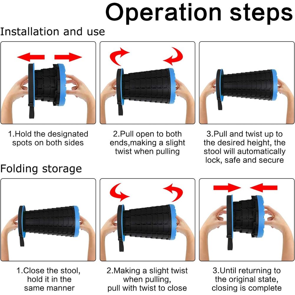 Portable Telescoping Stool, Lightweight Simple Stool Collapsible/Retractable Load 330 lb, Camping Folding Seat for Outdoor, Indoors, Travel, BBQ, Fishing, Garden, Party,Kitchen, Hiking-(Blue)