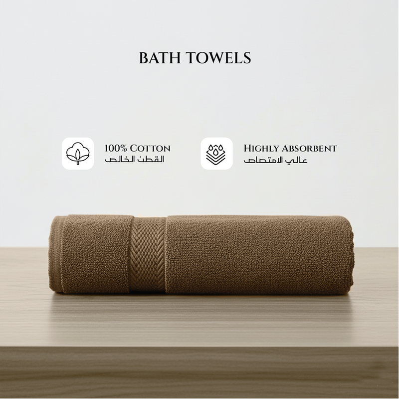 Premium Cotton Towel 70x140cm 2-Piece Bath Towel , 600 GSM Quick Dry and Durable , Brown