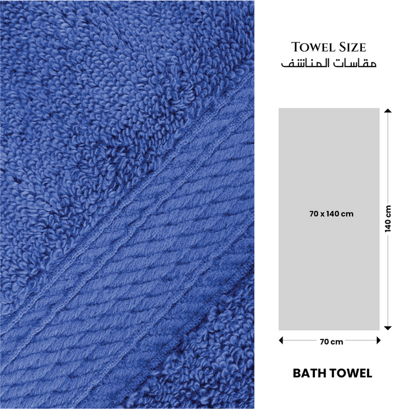 Premium Cotton Towel 70x140cm 2-Piece Bath Towel , 600 GSM Quick Dry and Durable , Royal Blue
