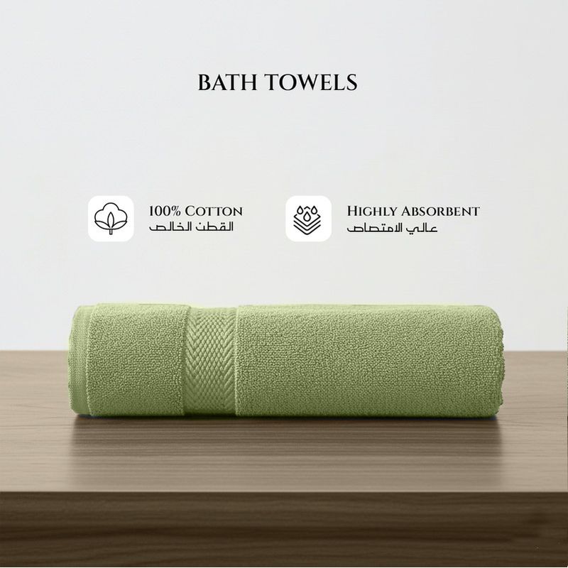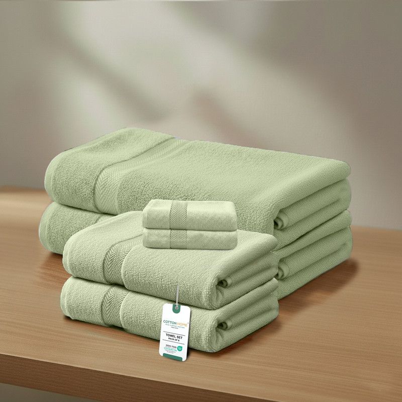 Premium Cotton Towel Set 6-Piece Towel Set Includes 2pc Face Towel 30x30cm,2pc Hand Towel 40x70cm, 2pc Bath Towel 70x140cm , 600 GSM Quick Dry and Durable , Green