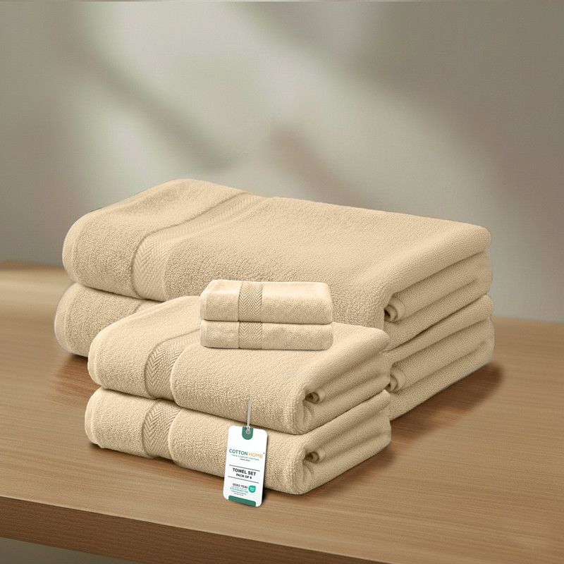 Premium Cotton Towel Set 6-Piece Towel Set Includes 2pc Face Towel 30x30cm,2pc Hand Towel 40x70cm, 2pc Bath Towel 70x140cm , 600 GSM Quick Dry and Durable , Linen