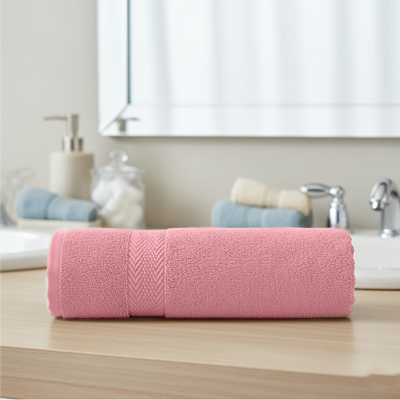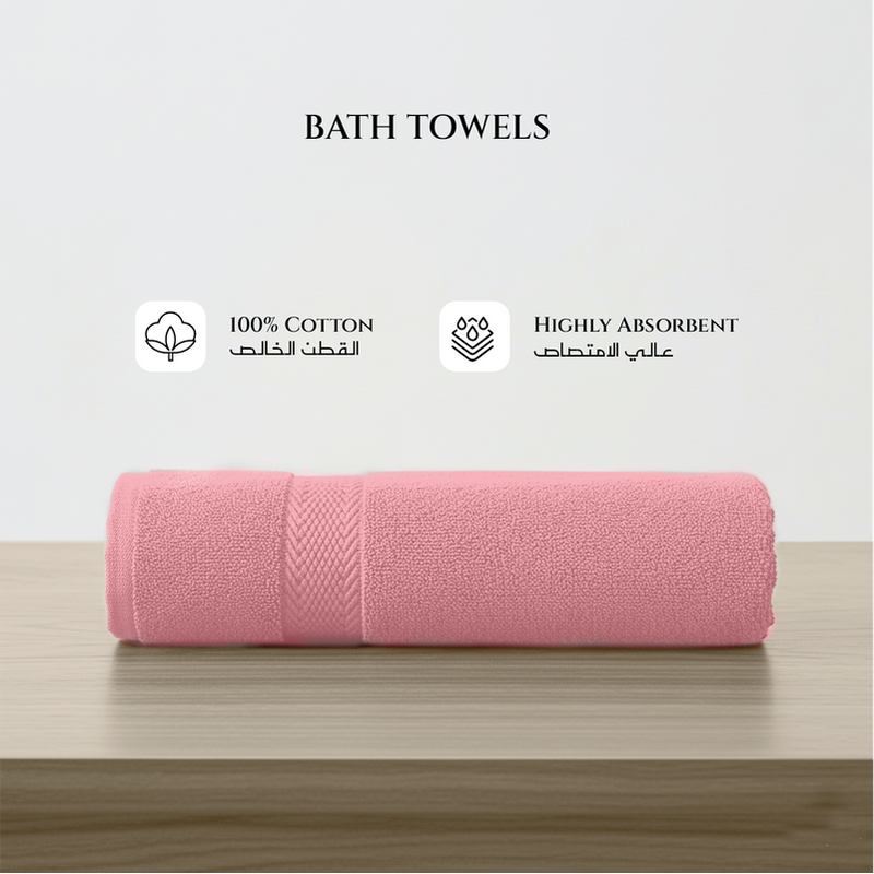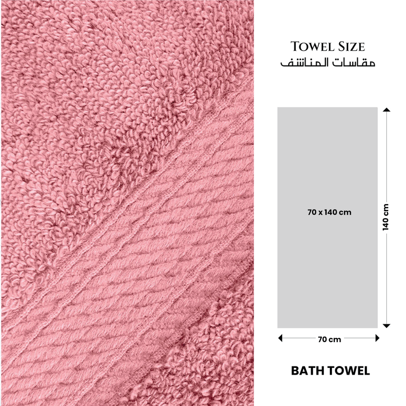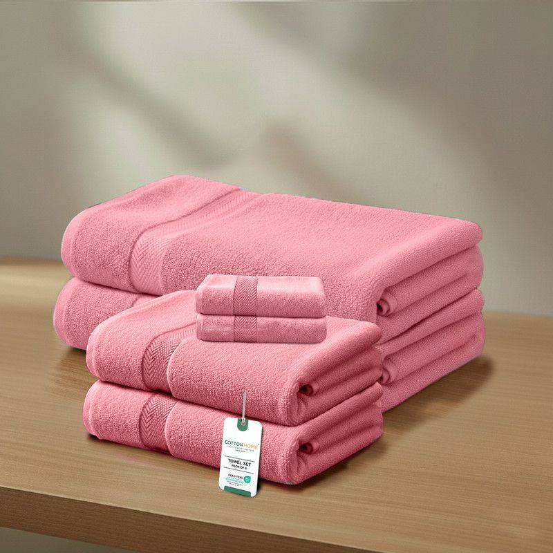 Premium Cotton Towel Set 6-Piece Towel Set Includes 2pc Face Towel 30x30cm,2pc Hand Towel 40x70cm, 2pc Bath Towel 70x140cm , 600 GSM Quick Dry and Durable , Pink