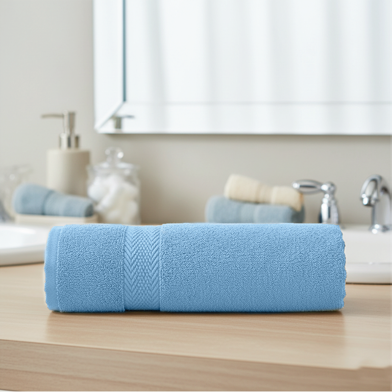 Premium Cotton Towel Set 8-Piece Towel Set Includes 4pc Face Towel 30x30cm,2pc Hand Towel 40x70cm, 2pc Bath Towel 70x140cm , 600 GSM Quick Dry and Durable , Blue