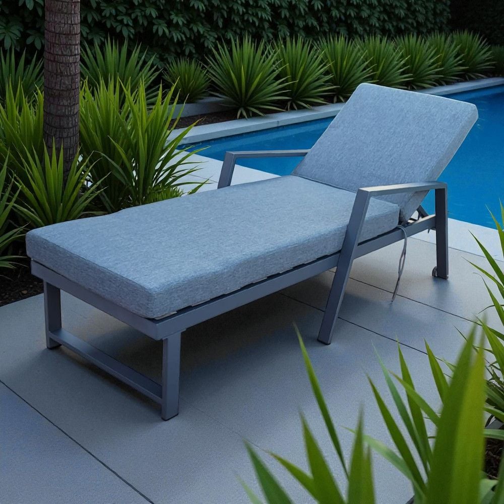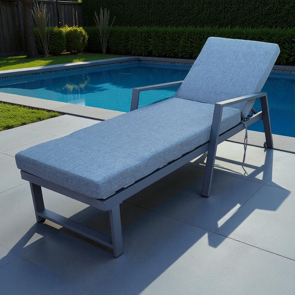 Premium Grey Aluminium Outdoor Sun Lounger with Adjustable Backrest – Grey Cushions
