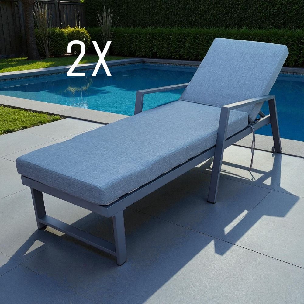 Premium Grey Aluminium Outdoor Sun Lounger with Adjustable Backrest – Grey Cushions , 2x SunBeds