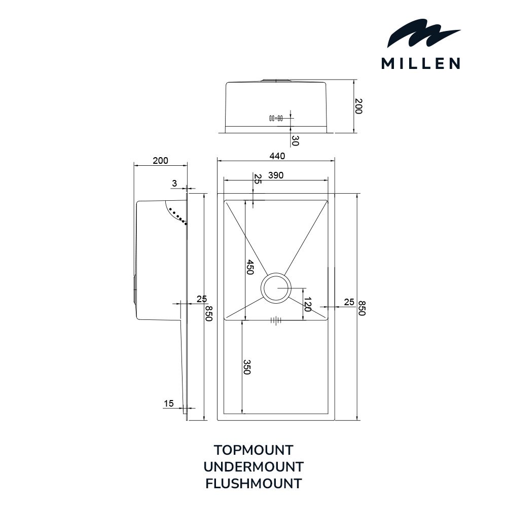 This undermount sink features a functional single bowl with a practical drainer area — ideal for rinsing and drying dishes efficiently. The 200mm bowl depth is perfect for daily kitchen tasks, and the round overflow enhances safety and water flow management.