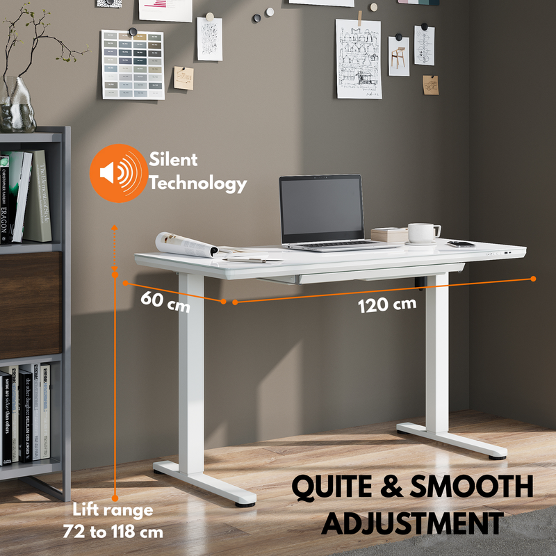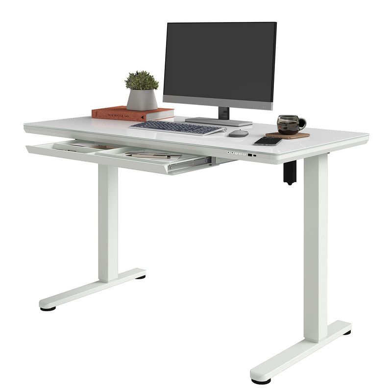 Premium Height Adjustable Standing Desk – Ergonomic Sit-Stand Workstation with Tempered Glass Top, Wireless Charging, USB & Type-C Ports, Storage Drawer – Modern Home Office Desk