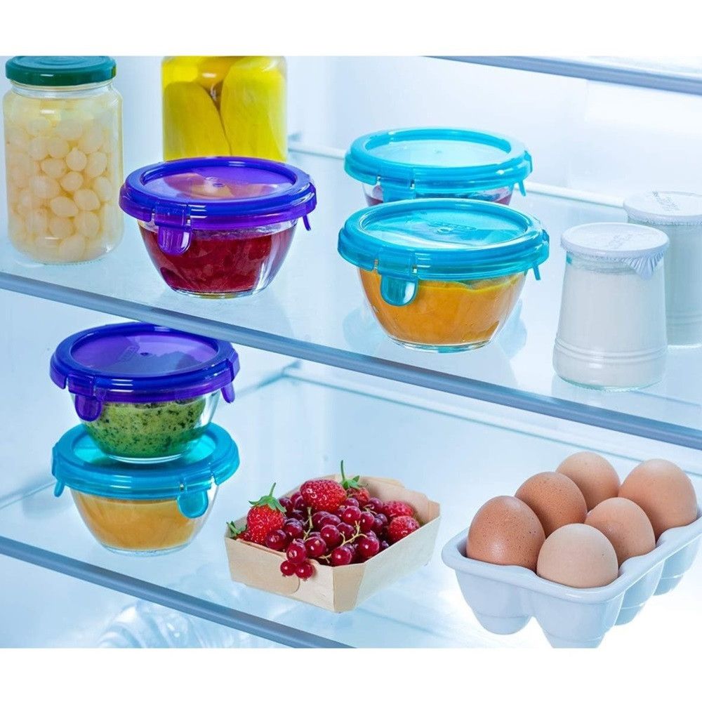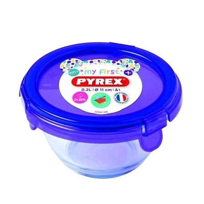 Pyrex Baby Food Storage with Purple Lid 200ml - Airtight, Multi-Purpose Glass Container for Baby Meals