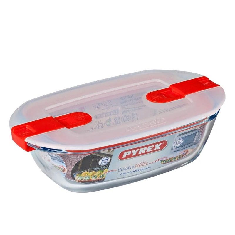 Pyrex Cook&Heat 400ml Rectangular Borosilicate Glass Roaster with Airtight Lid - Oven, Freezer, Microwave Safe