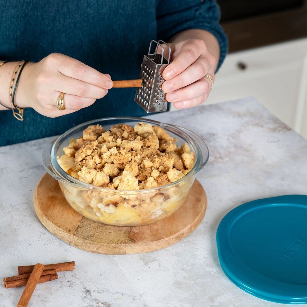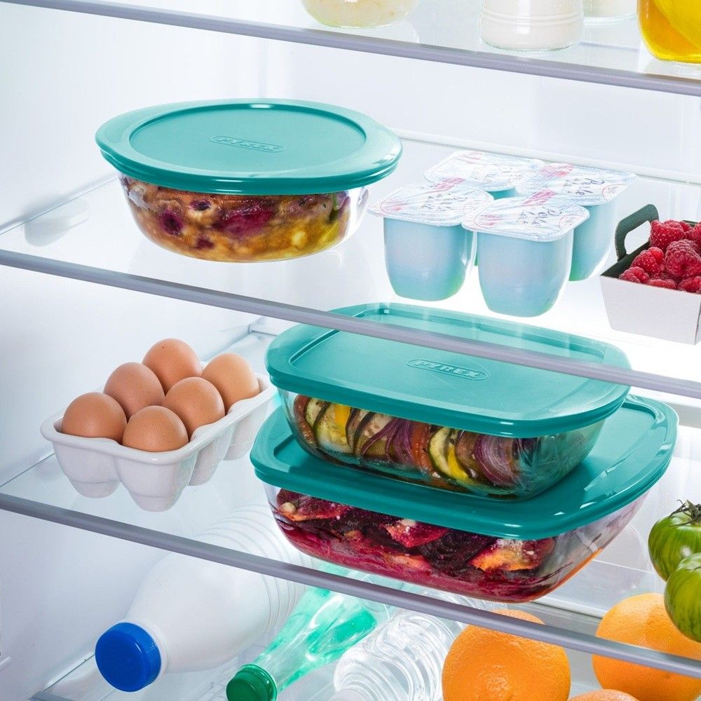 The product Pyrex Cook&Store 350ml Round Roaster with Lid for Versatile Cooking and Storing images have props used for illustrative purposes. Product Color may vary slightly due to photographic lighting or your screen settings.