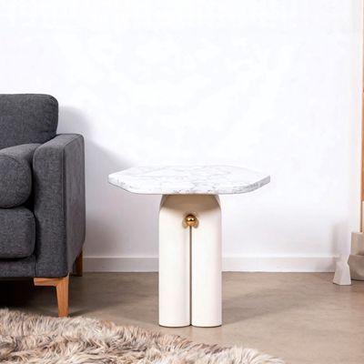 Qasr End Table -Pearl White/Silver