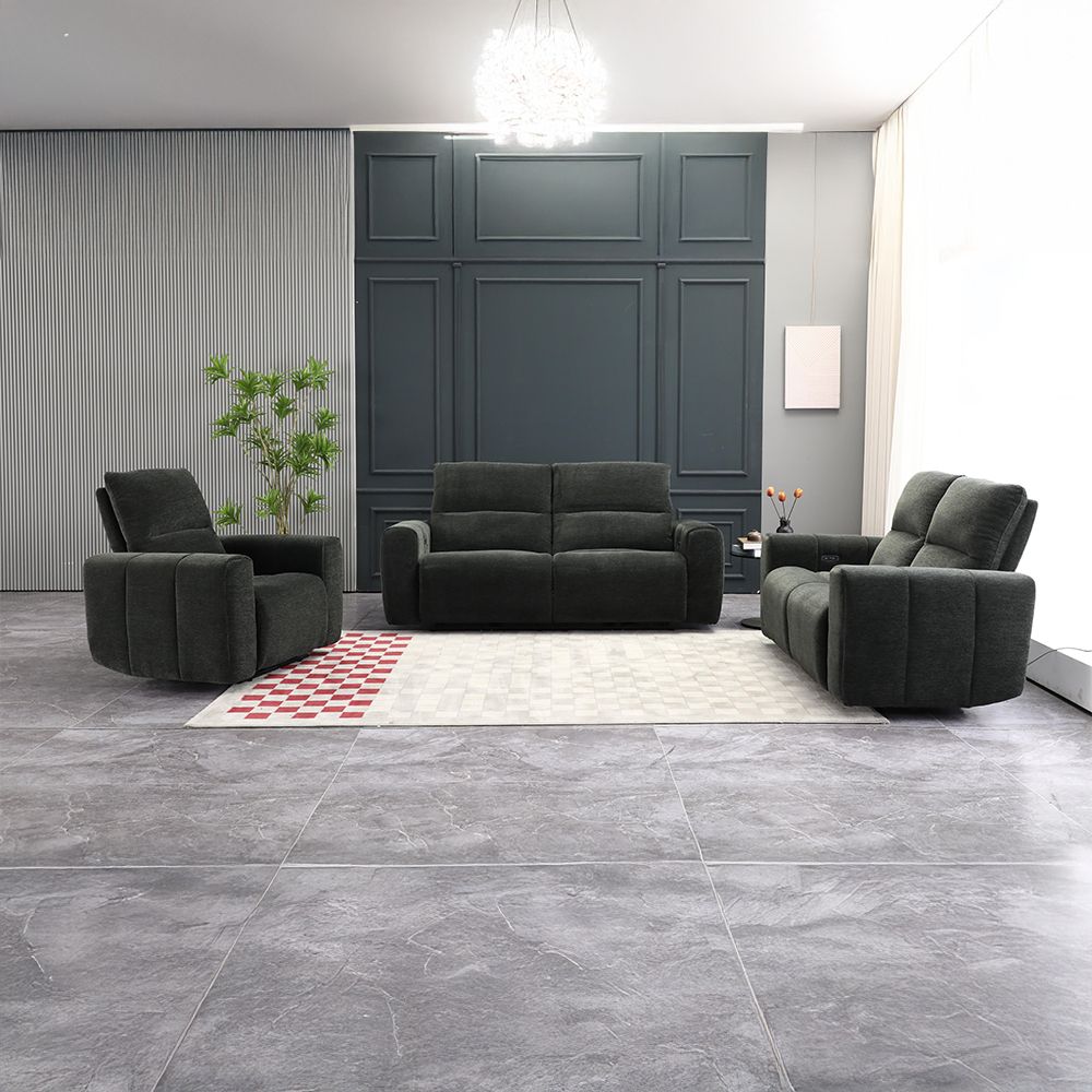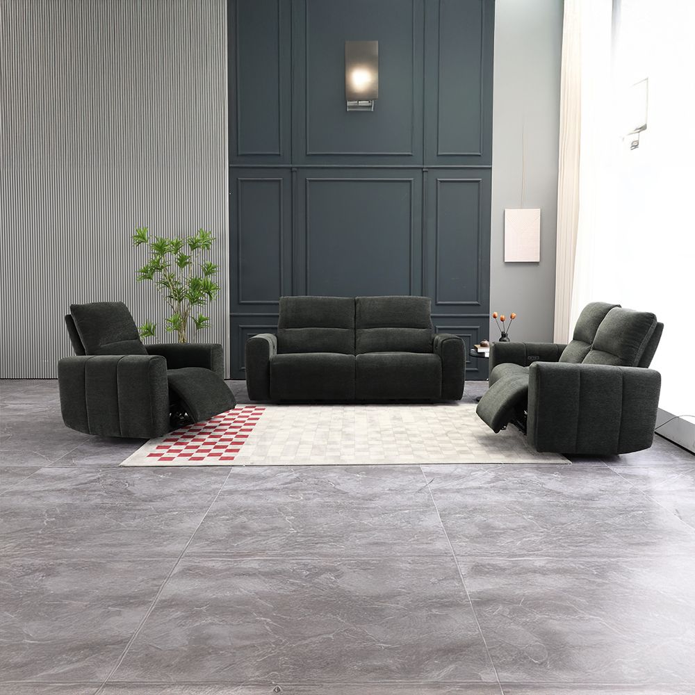 Quantum 3+2+1 Seater Fabric Power Motion Recliner Set- Grey
