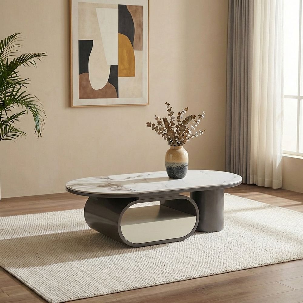 The light grey tabletop beautifully contrasts with the gunmetal black base, creating a sleek and modern aesthetic that complements a variety of interior styles.
