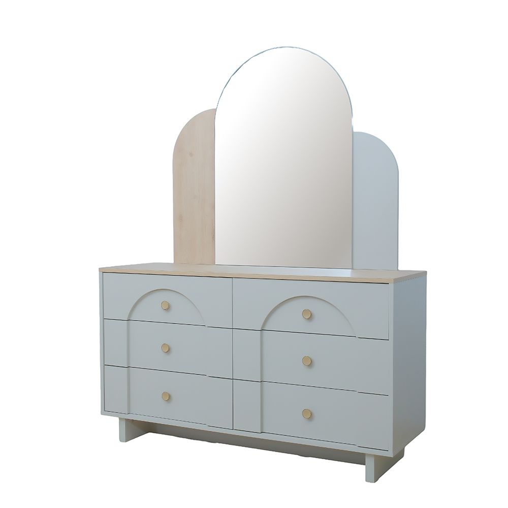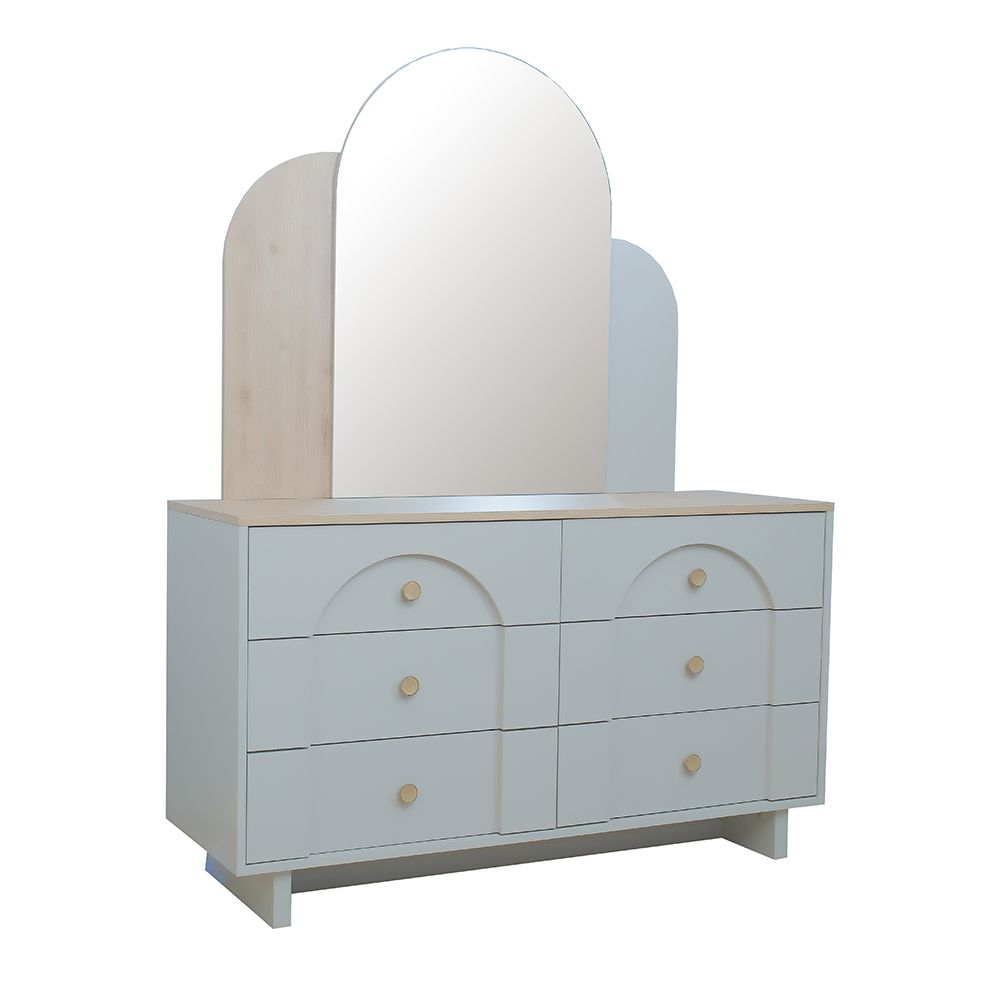 Reena 6 Drawer Dresser With Mirror -Dark Biege/Natural