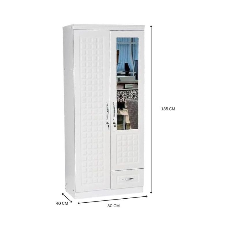 Riley 2 Door Wooden Wardrobe With Mirror and One Drawer White