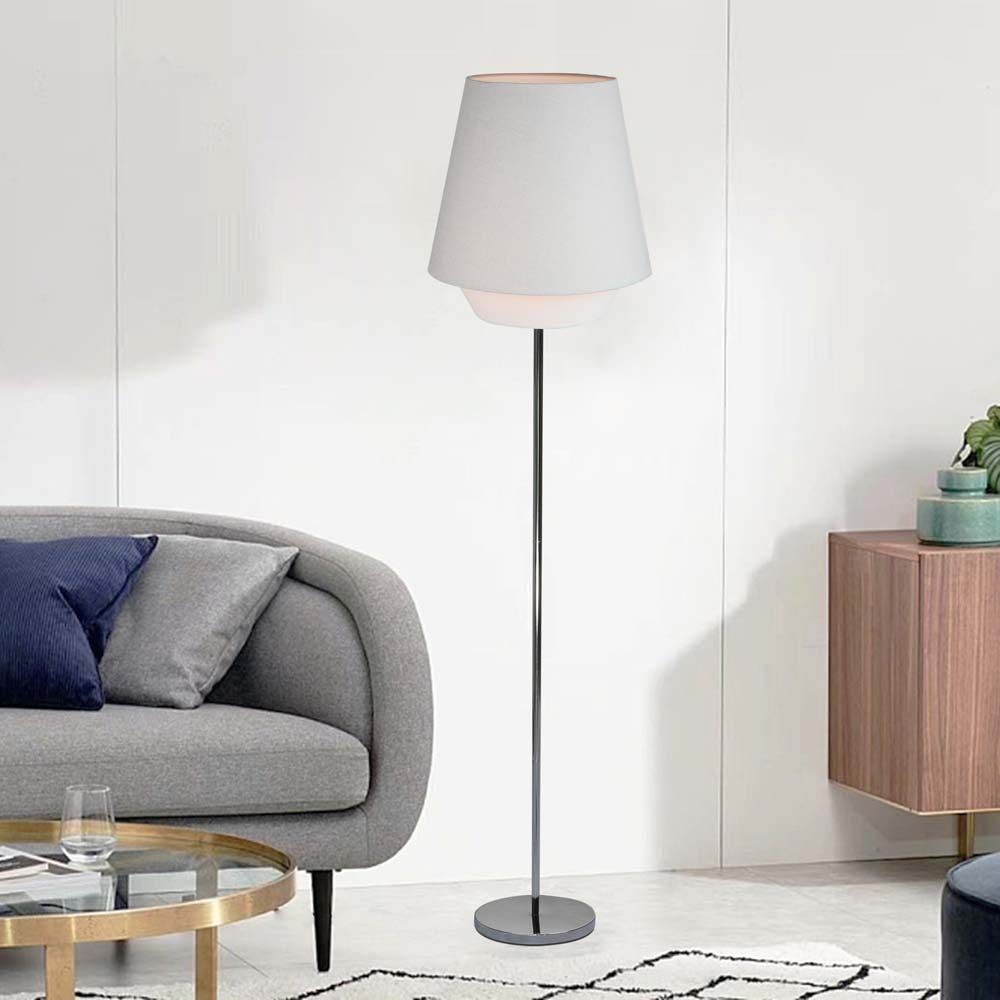 Rondo Metal Floor Lamp 30×H148Cm- Chrome+(Warm Grey+Offwhite)