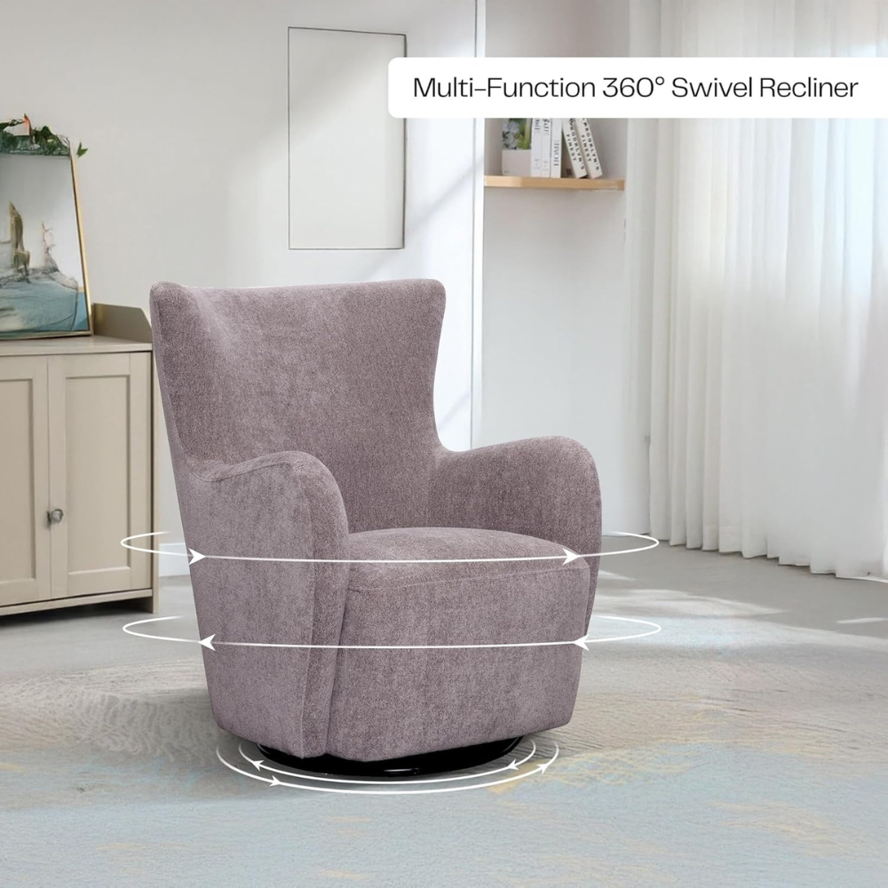 Rotai George Swivel and Glider Chair | 360° Swivel Glider Chair with Cushioned Seat & Armrests, Durable Ash Grey Fabric, Modern Living Room & Nursery Chair (PEWTER)