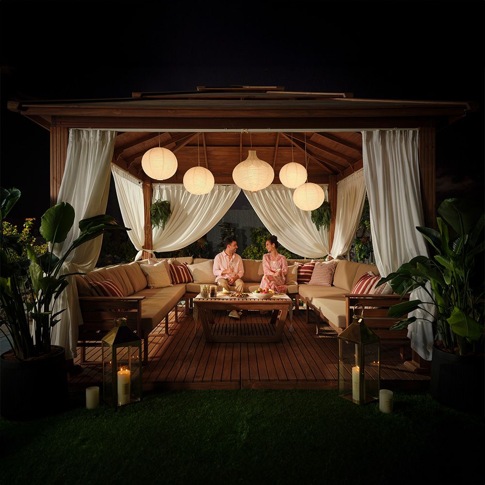 It includes curtains on all four sides, allowing you to create a private, intimate space whenever desired.