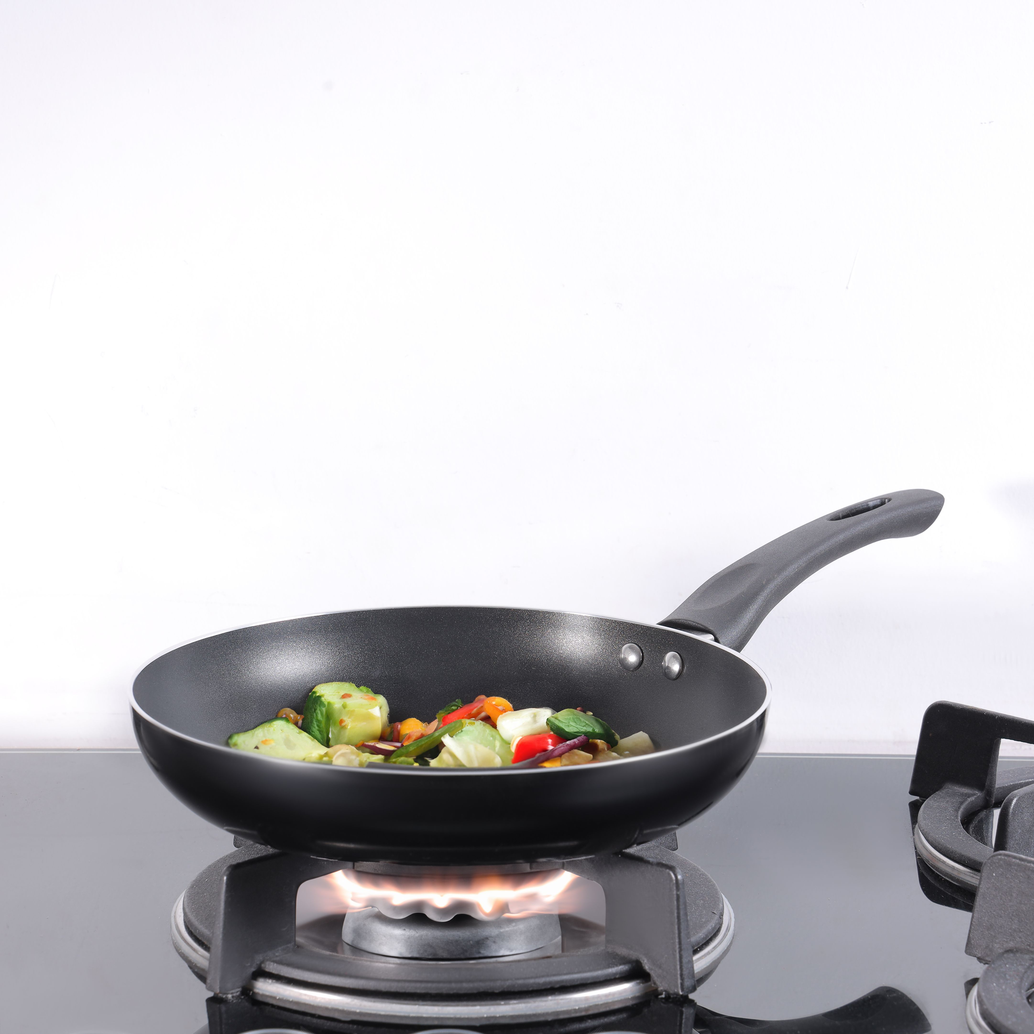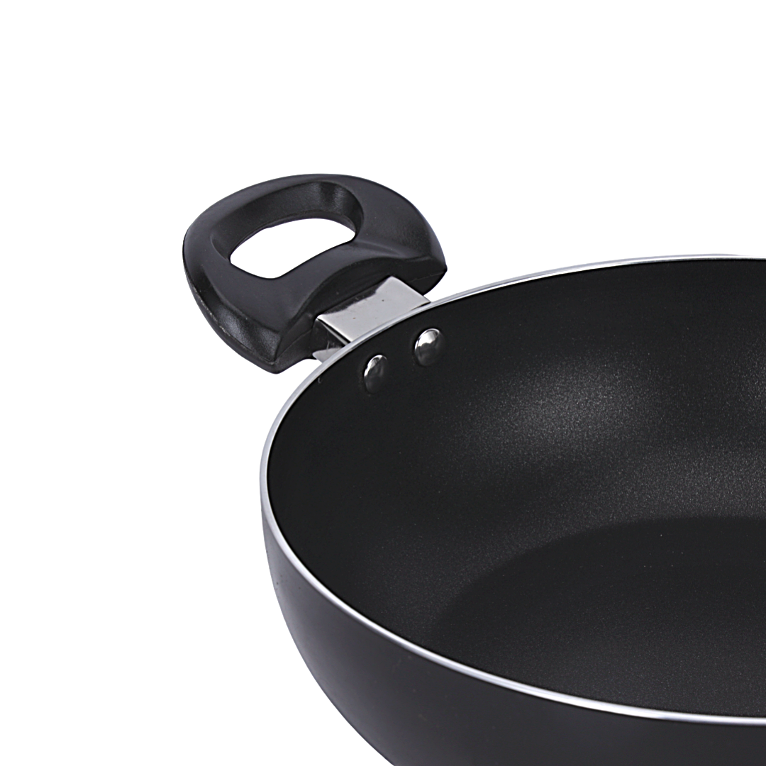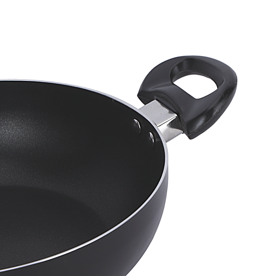 Royalford 3 Piece Nonstick Cookware Set- RF11958/ Strong Aluminum Body with Non-Stick Coating Interior and Bakelite Handle/ Includes a Kadai with Tempered Glass Lid and a Frypan, Compatible with Hot Plate, Halogen, Ceramic and Gas Stovetops/ Perfect for Frying, Sauting, Tempering/ Black