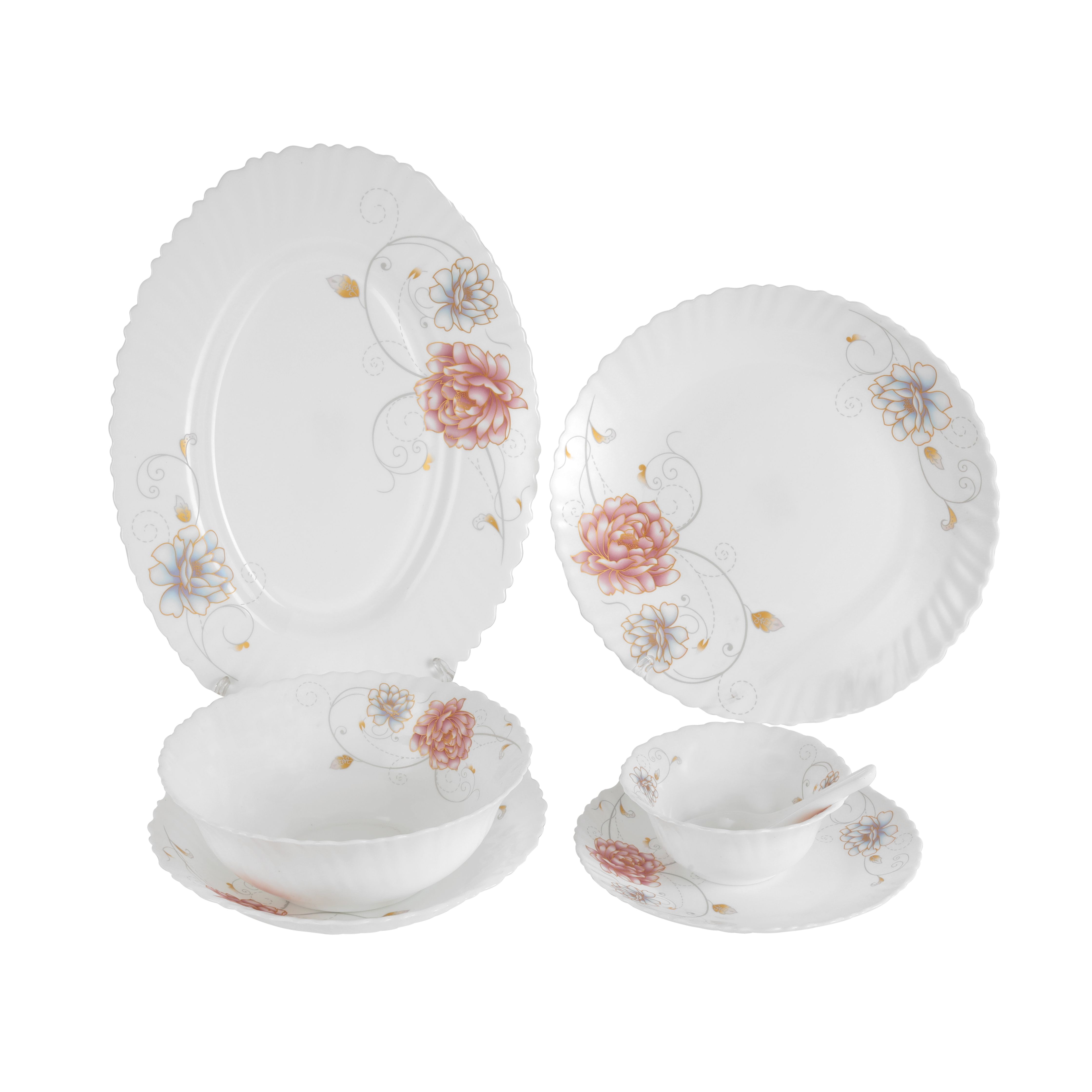 Royalford 36 Piece Opalware Dinner Set- RF11995| Includes Oval Plate, Soup Plates, Dinner Plates, Flat Plates, Salad Bowls, Small Bowls and Soup Spoons| Dishwasher-Safe and Microwave Safe| Chip-Resistant and Food-Grade| White and Floral