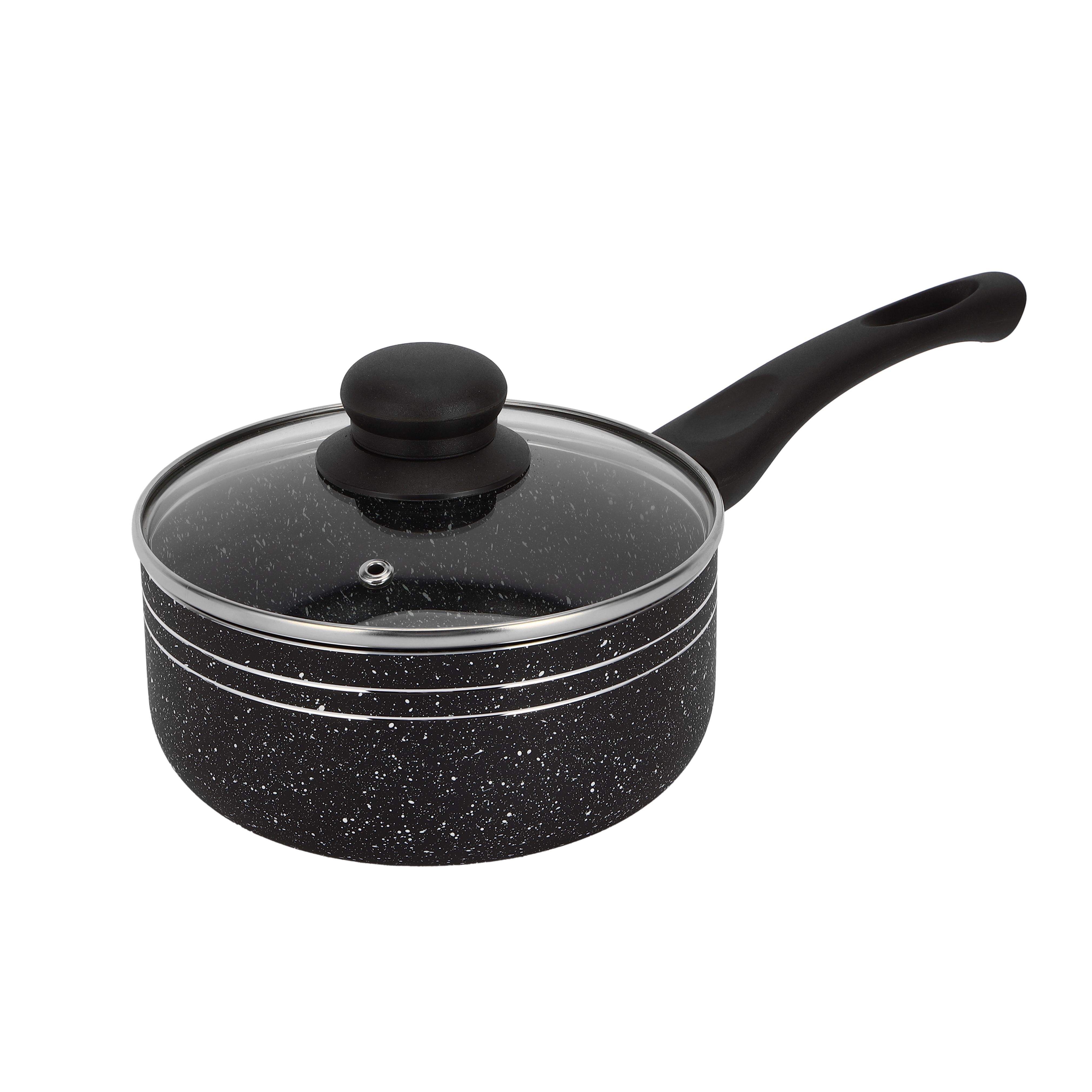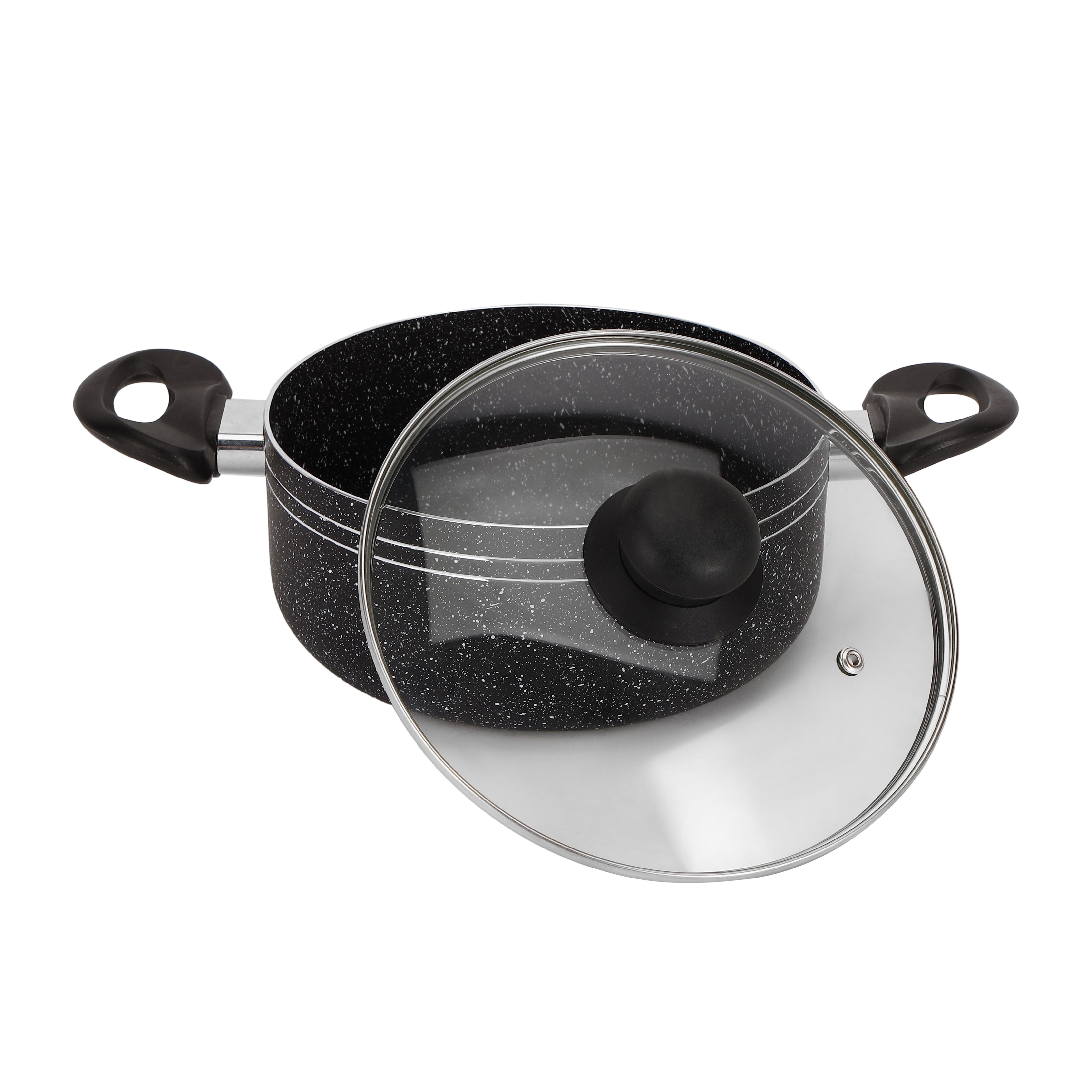 Royalford 9-piece Ritz Plus Cookware Set- RF12514/ Marble Coated and Press Aluminum Body, with Dot Induction Base, Bakelite Handles and Lid/ Includes Casseroles, Saucepan, Bamboo Kitchen Tools and Fry Pan/ Black