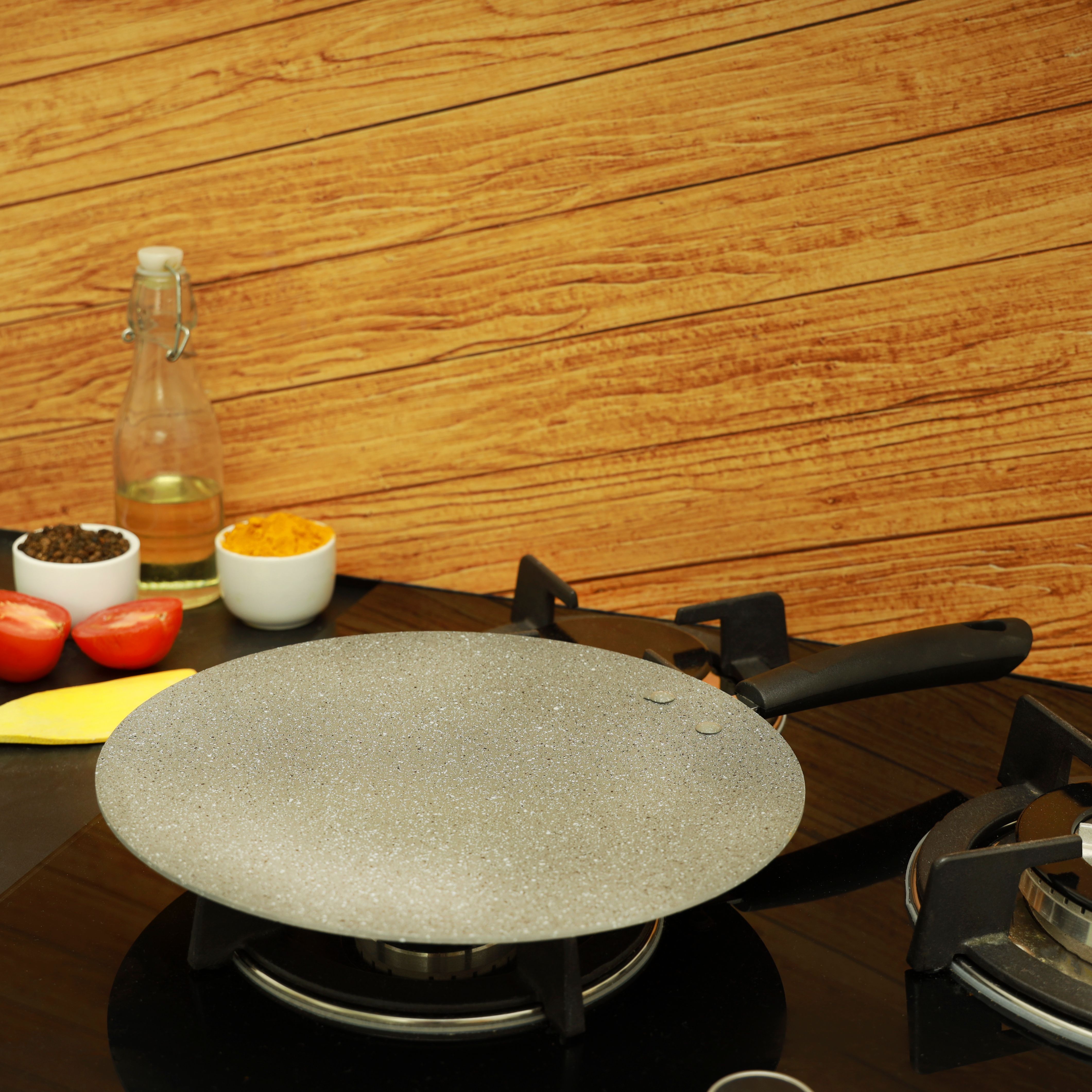 Royalford RF9992 Smart Granite Series Tawa, Forged Aluminium | 5 Layer Construction | Bakelite Handle | 28cm Multi-Functional Aluminum Pan Suitable For Crepe Chapatti Pancakes Roti