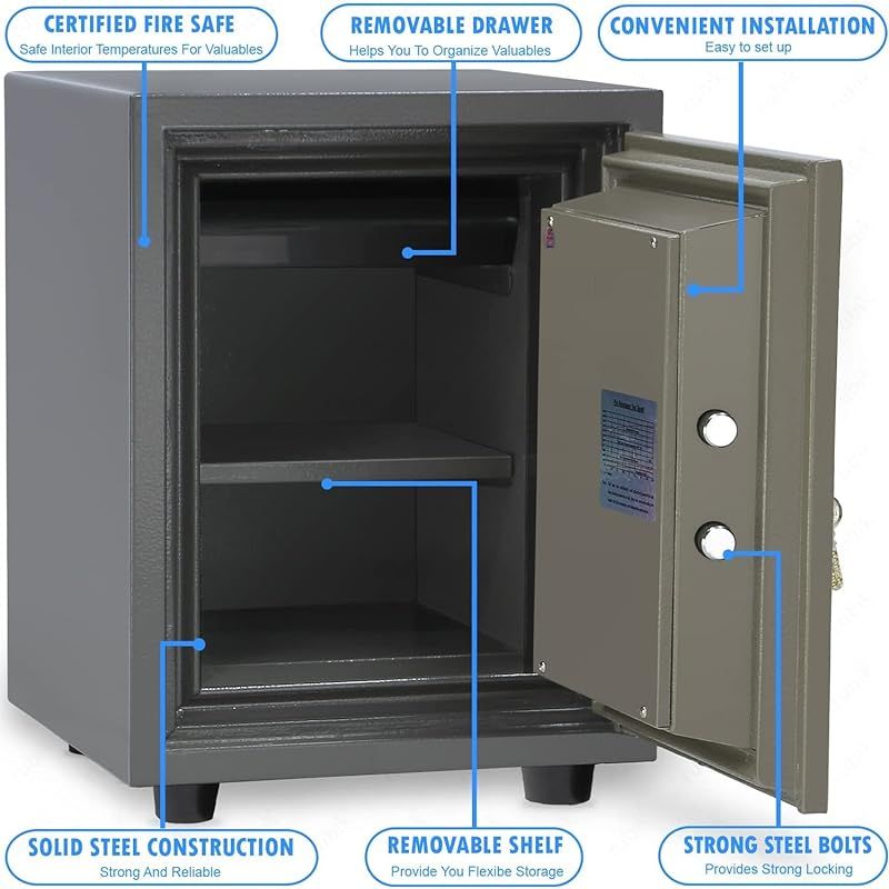 Safe Box Locker with Handle 2-Keys Fire Resistant, Waterproof for Home, Office, Hotel, Privacy Room, Bank, etc Size 34.5x45x35 CM 40-KG KLGW40