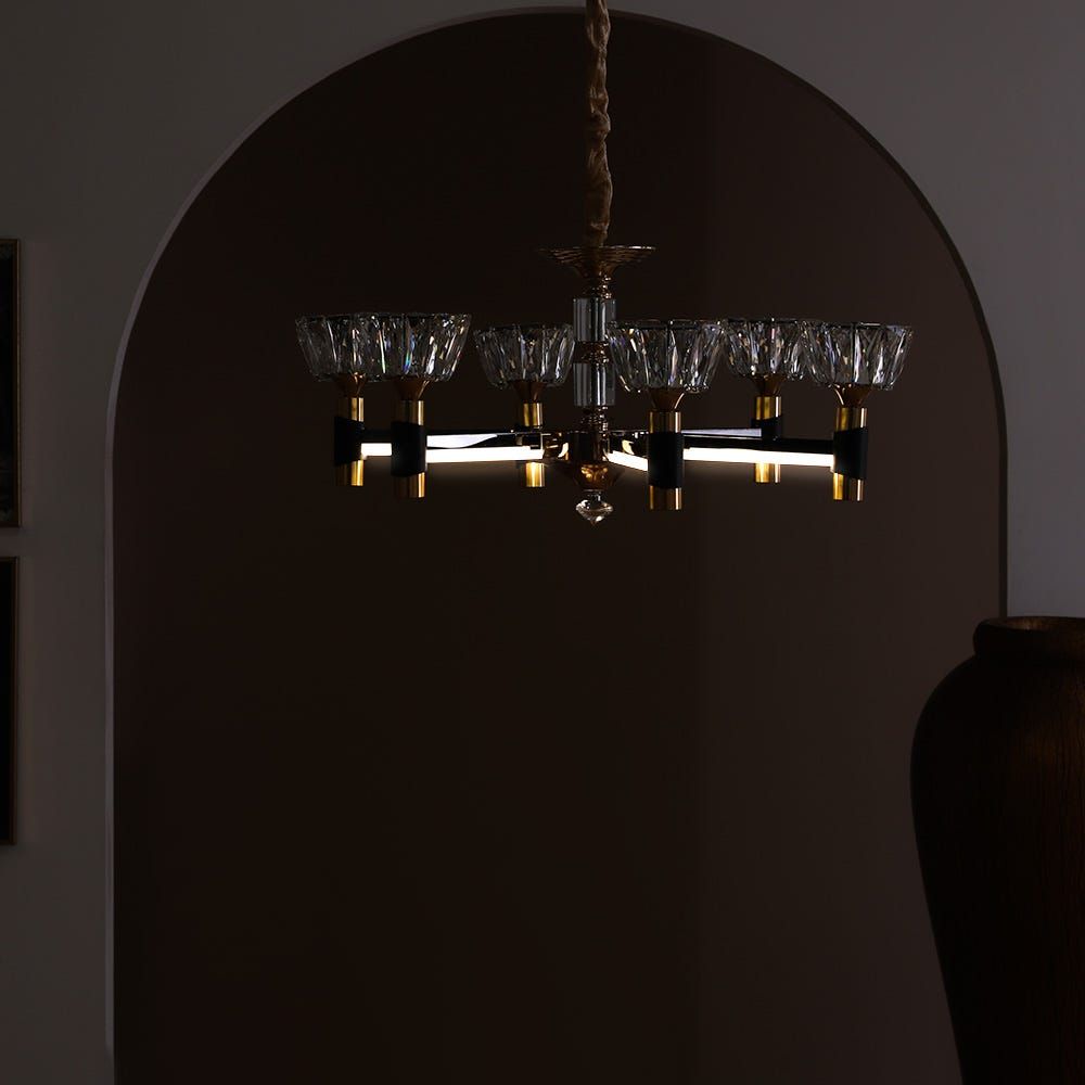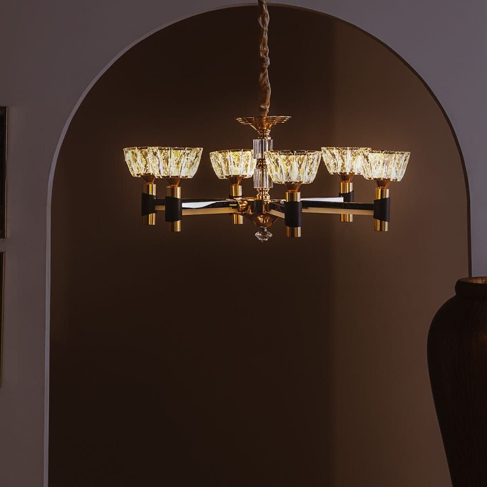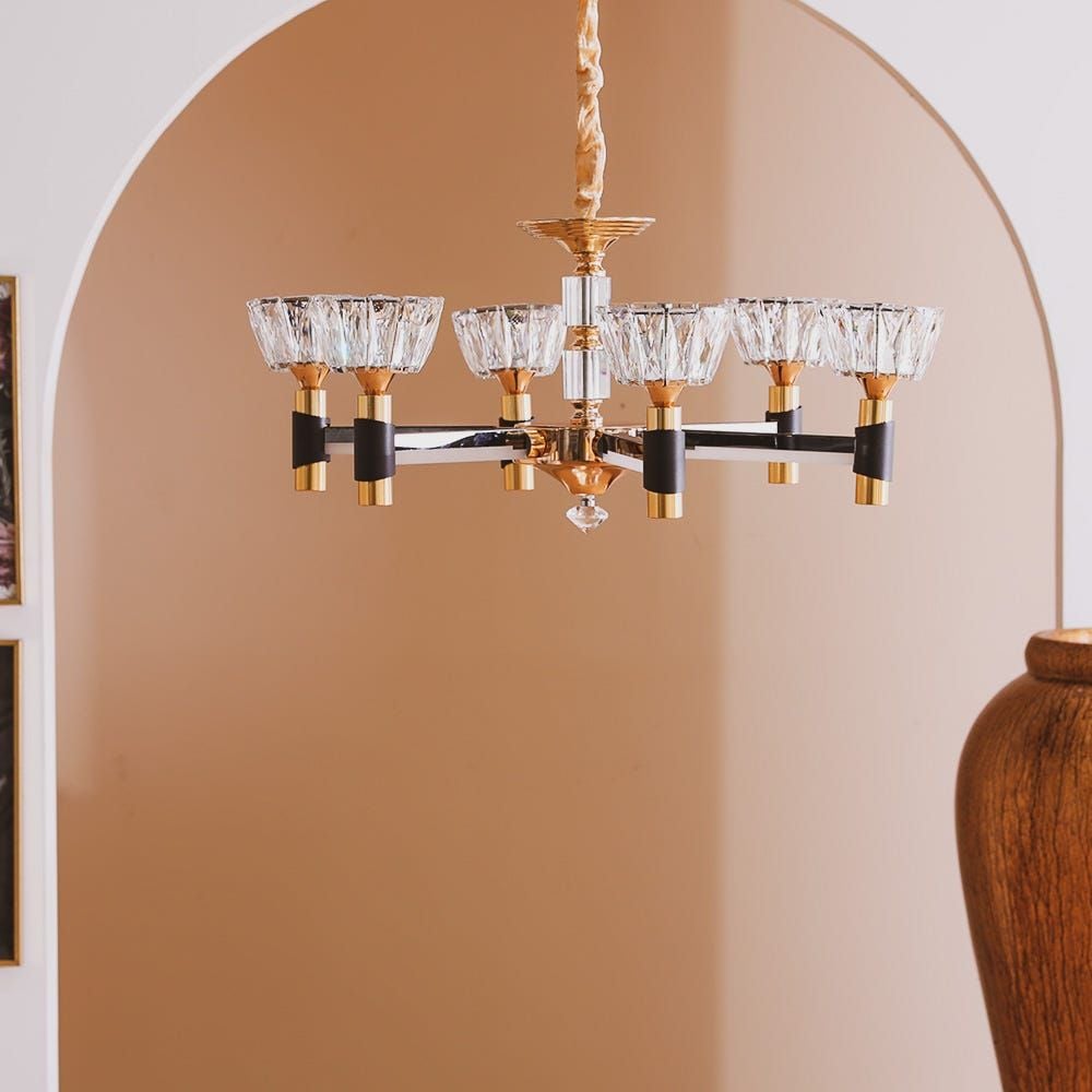 The chandelier can be mounted in your living, dining room or bedroom that is sure to make your space sparkle. We recommend checking out our collection of sofa sets and dining sets that would go well when placed under the chandelier.