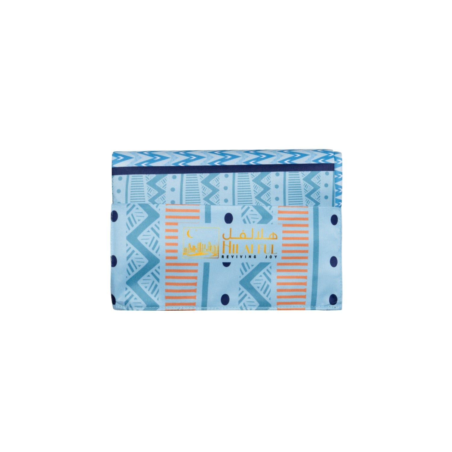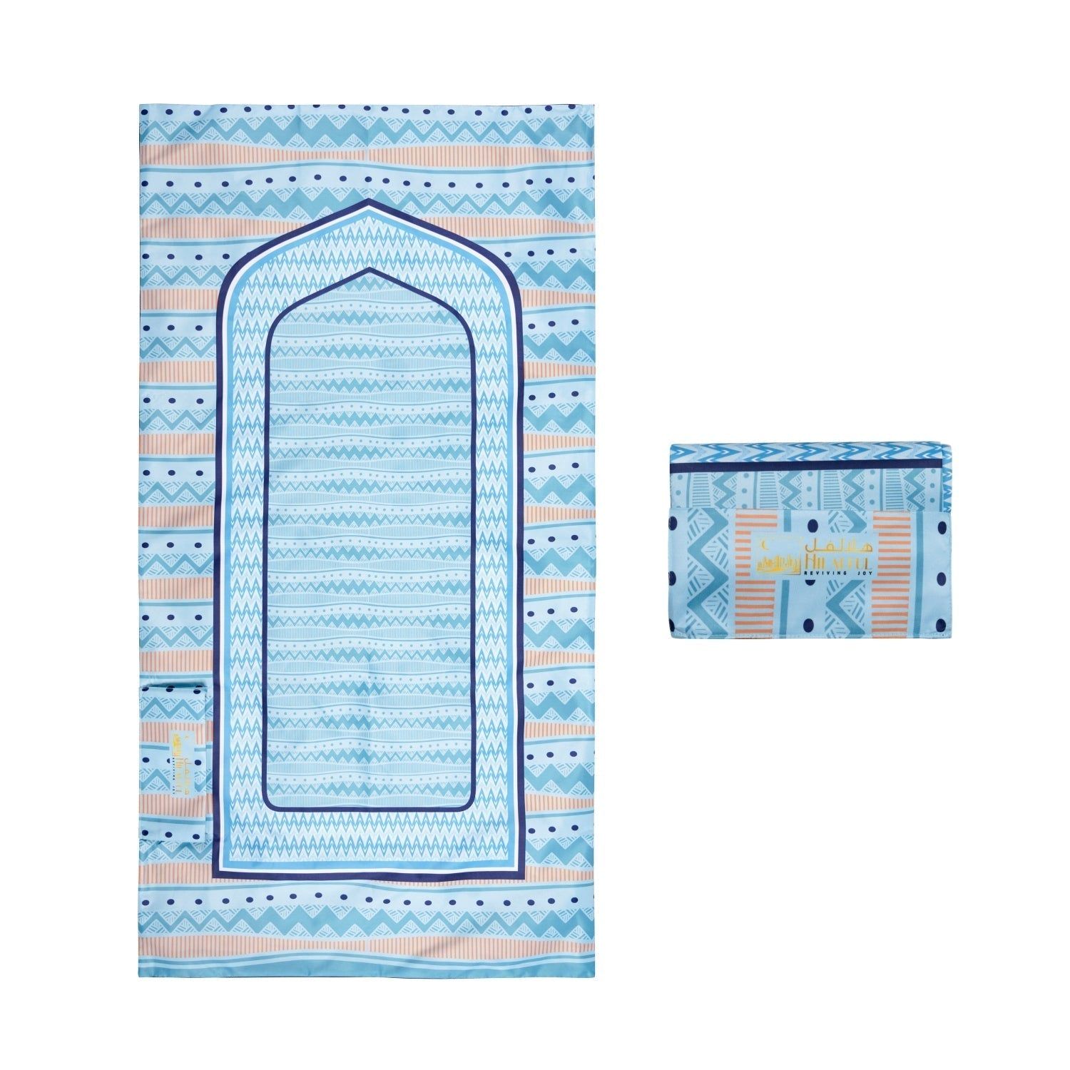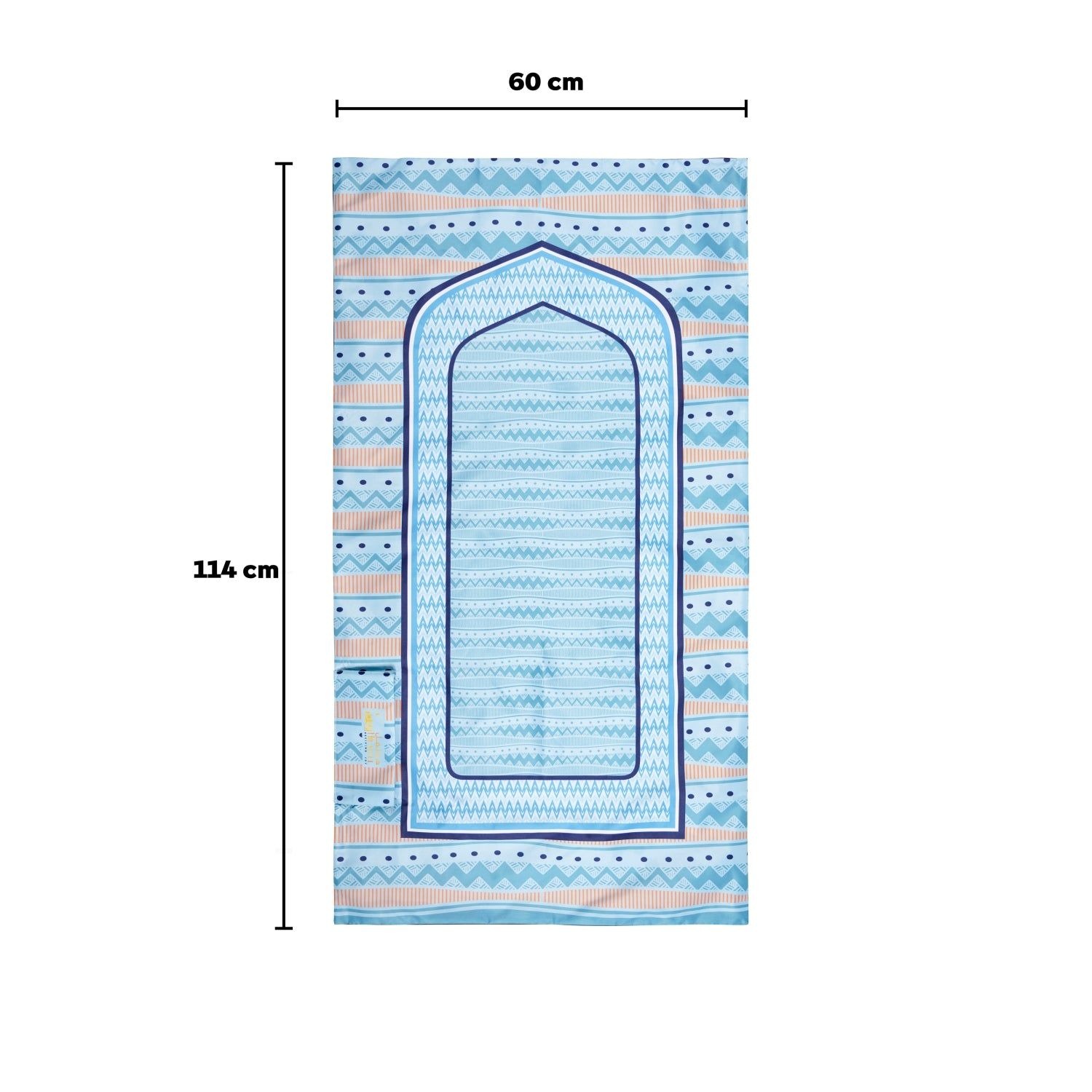 Portability Redefined: Salah On The Go is designed with the modern Muslim traveler in mind. It folds seamlessly into a built-in pocket, making it incredibly compact and easy to carry. Slip it into your bag, backpack, or even your pocket, ensuring you always have your prayer mat at hand.