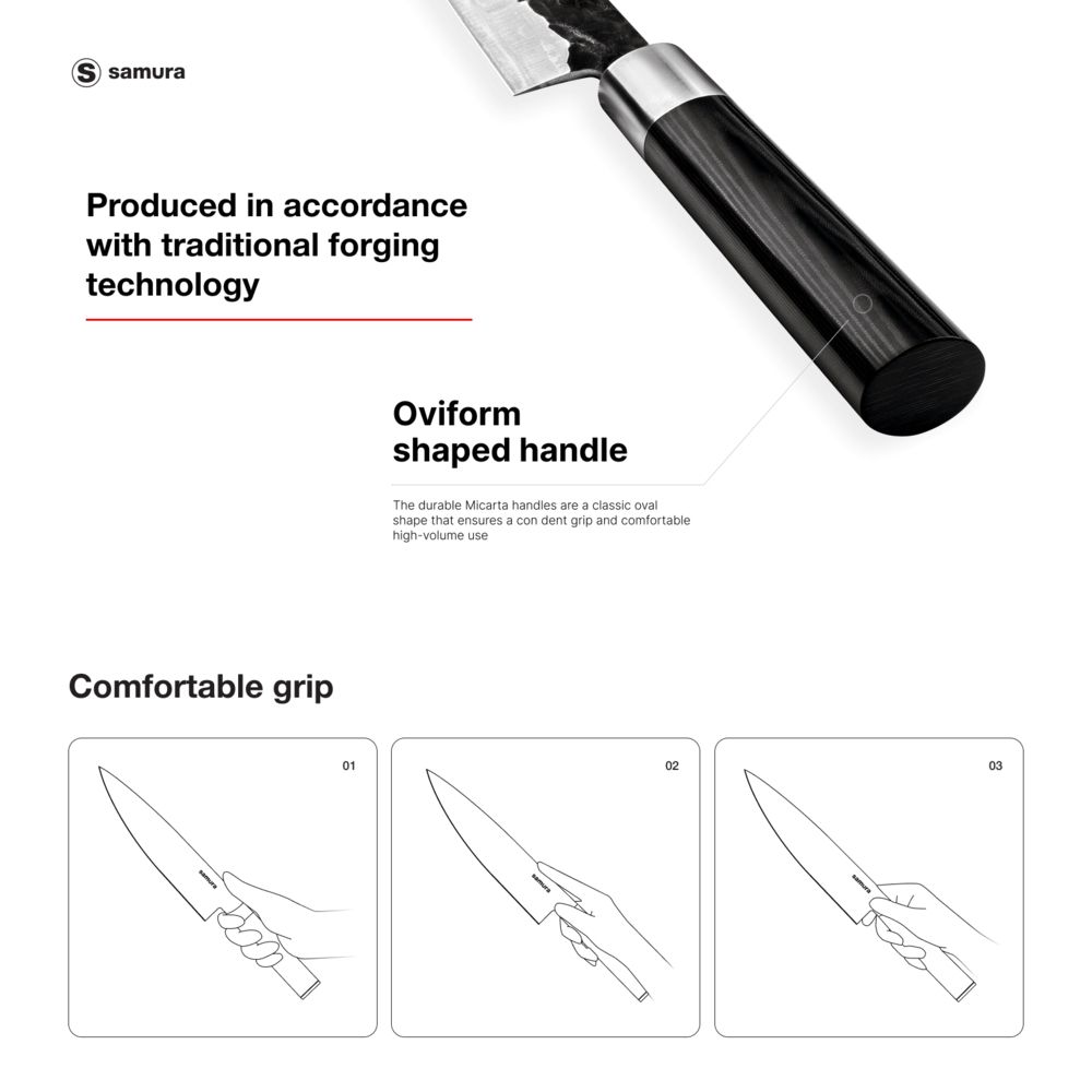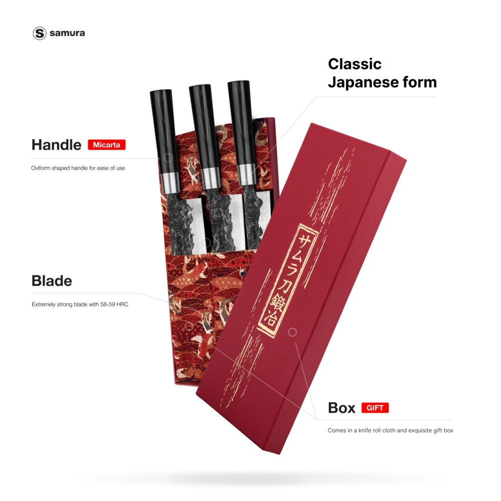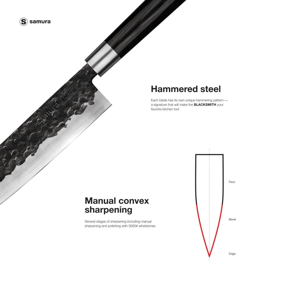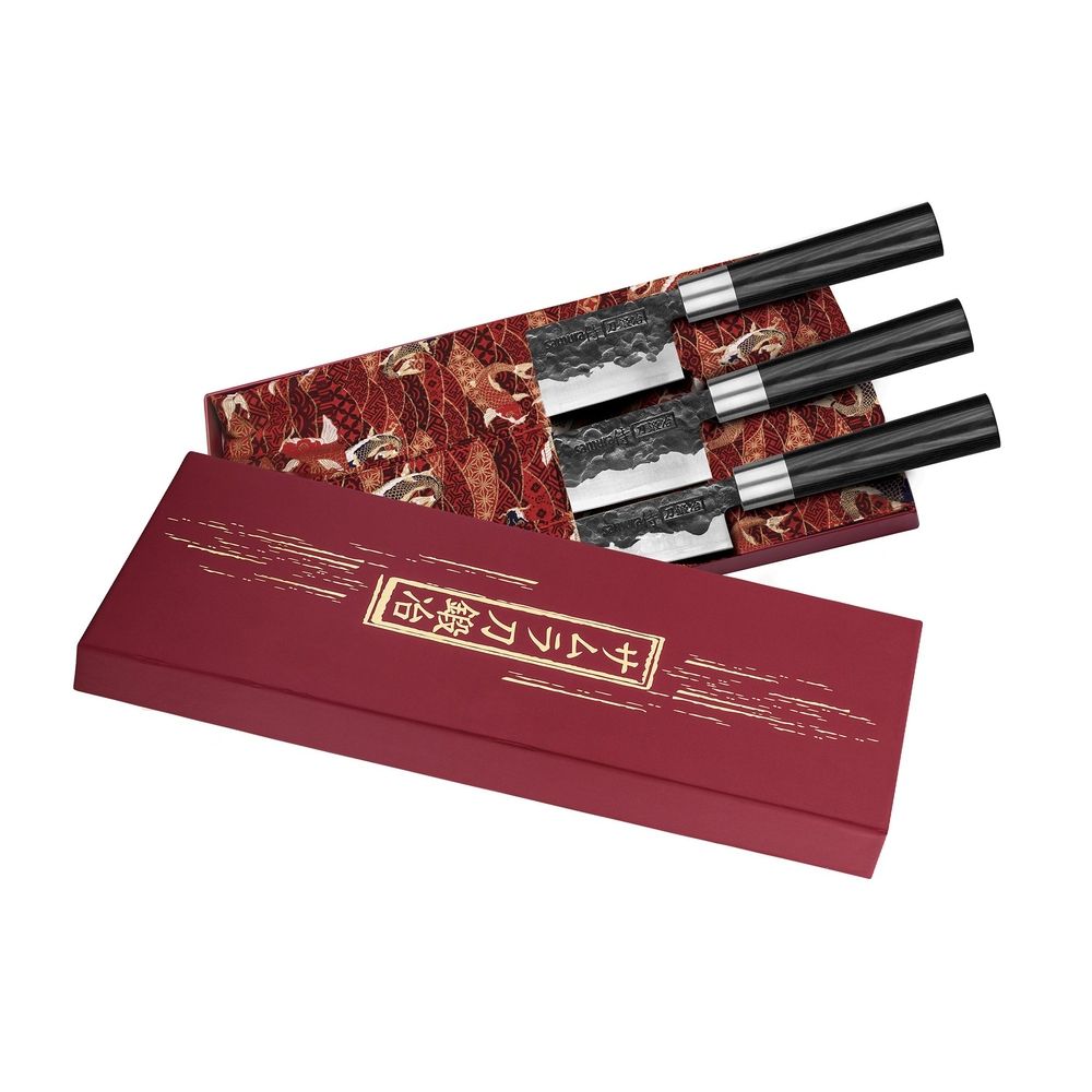 Samura Blacksmith Set Of 3 Kitchen Knives: Utility Knife, Nakiri Knife, Santoku Knife