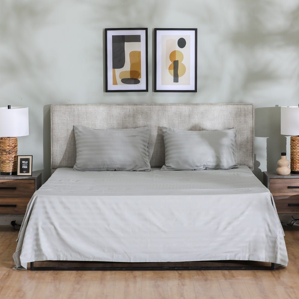 Satin Stripe 3- Piece King Flat Sheet Set 260x270 Cm Grey