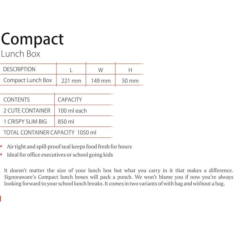 Signoraware Compact Lunch Box (850 Ml) - Pink