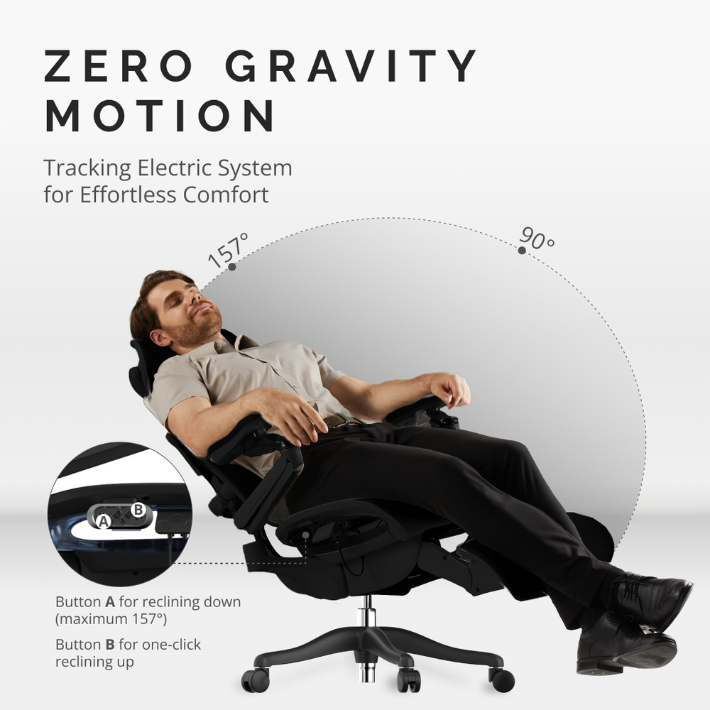 ZERO GRAVITY RECLINE – One-touch mechanism for lifting, tilting & sliding creates a weightless seatin