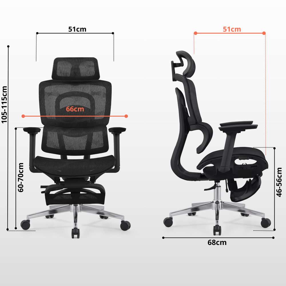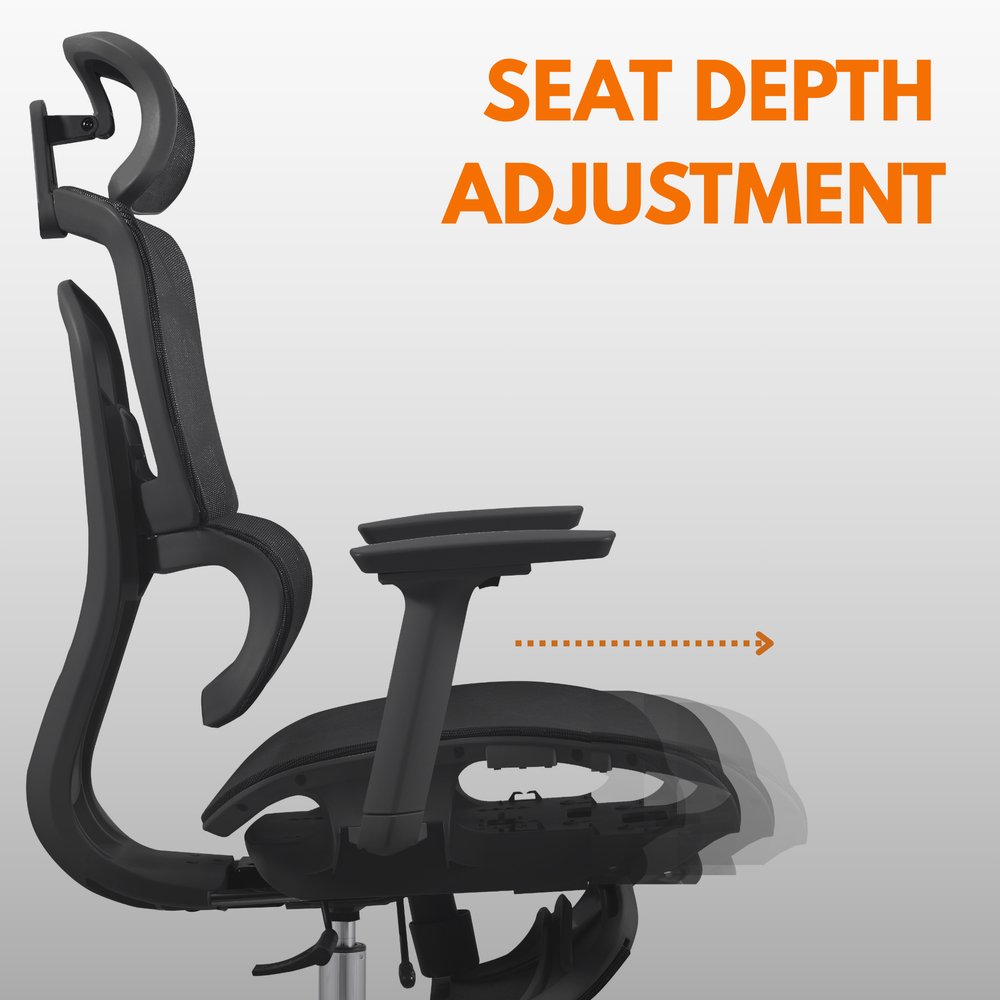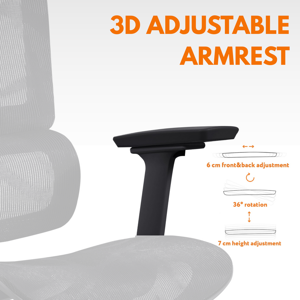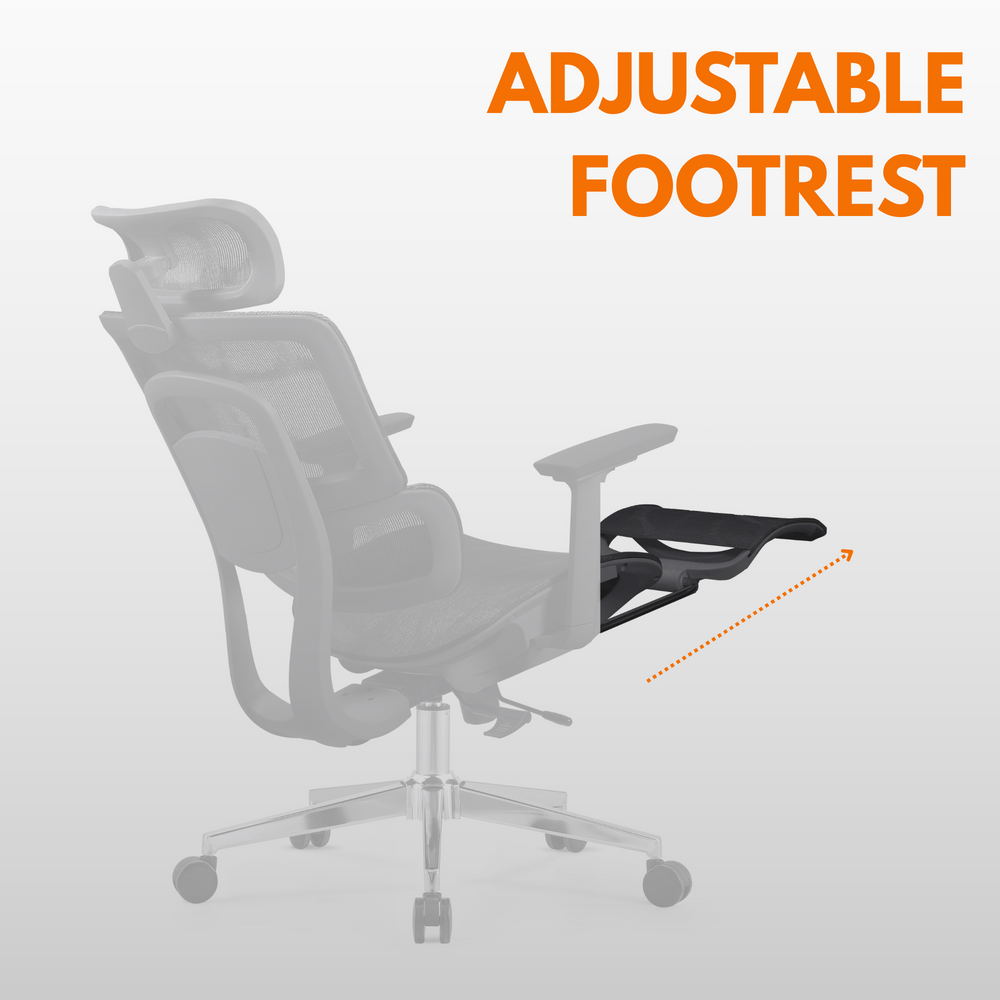 Skyland Premium Ergonomic Office Chair – High-Back Mesh, Reclining System with Footrest, Adjustable Lumbar Support – 2D Headrest, Backrest Height, Seat Depth, 3D PU Armrests, Metal Base
