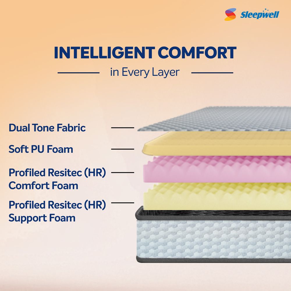 Sleepwell Dual Pro Profiled Foam | 10 Night Trial | Reversible | Gentle And Firm Triple Layered Anti Sag Foam Mattress | Super King Bed Size (200L x 200W x 30H cm)