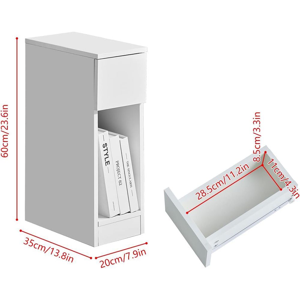 Slim Bedside Cabinet with Drawer: 20cm/7.9”(L)×35cm/13.8”(W)×60cm/23.6”(H), for small narrow corner space