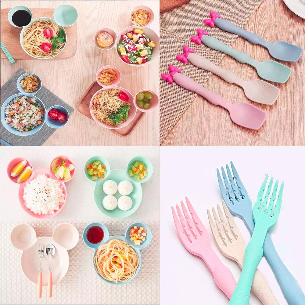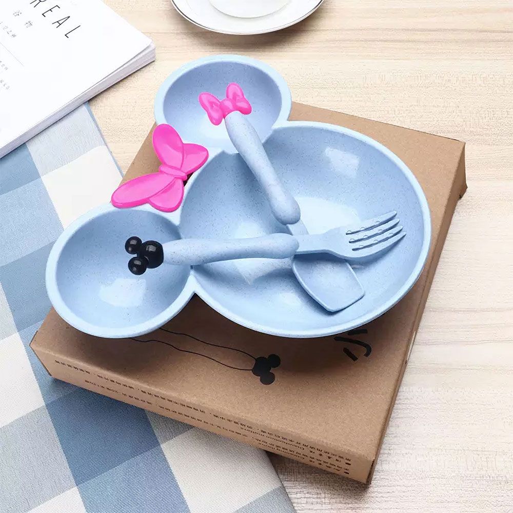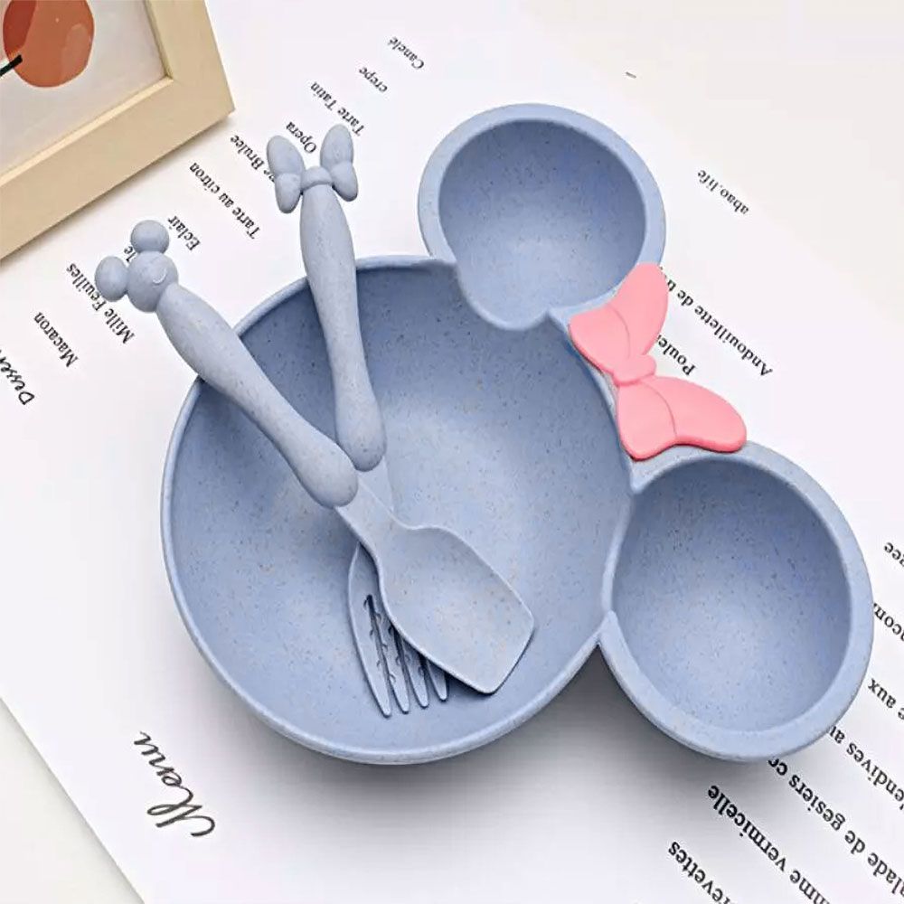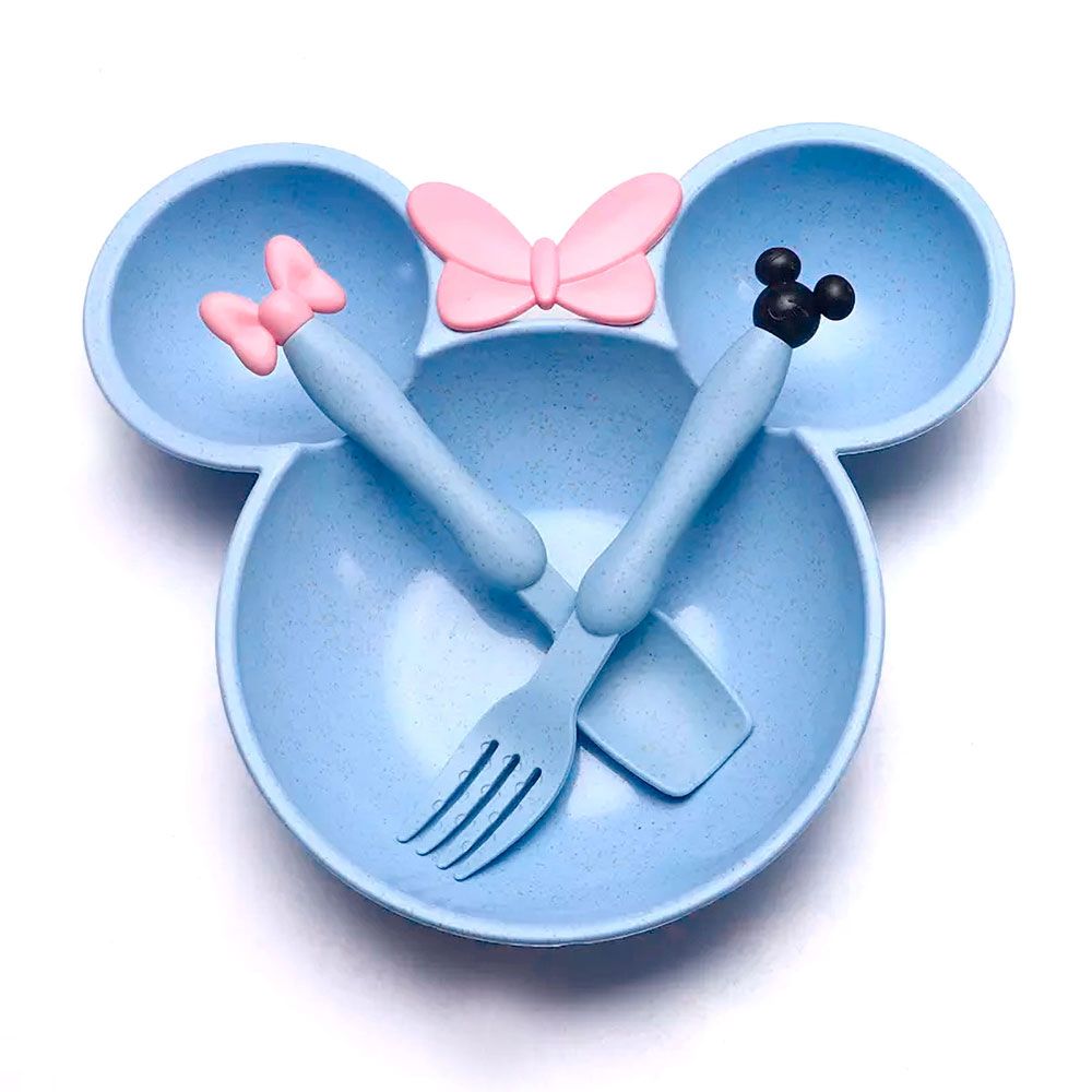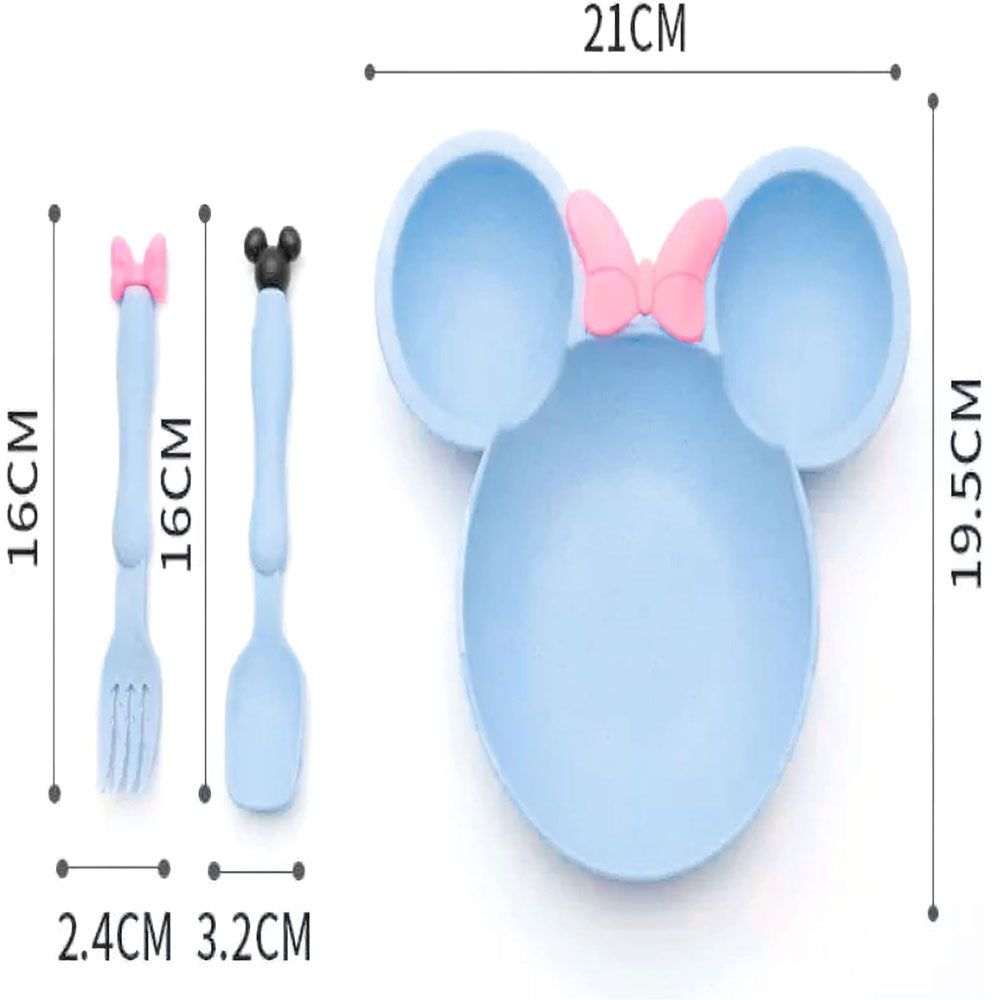 Snack attack Minnie Mouse Plates in Blue color with Spoon & Fork perfect for kids, parties or Disney themed event made with Wheat Straw Bringing fun and sustainability to the table (blue)