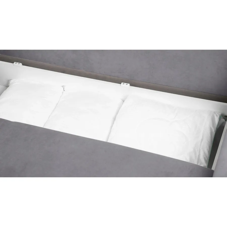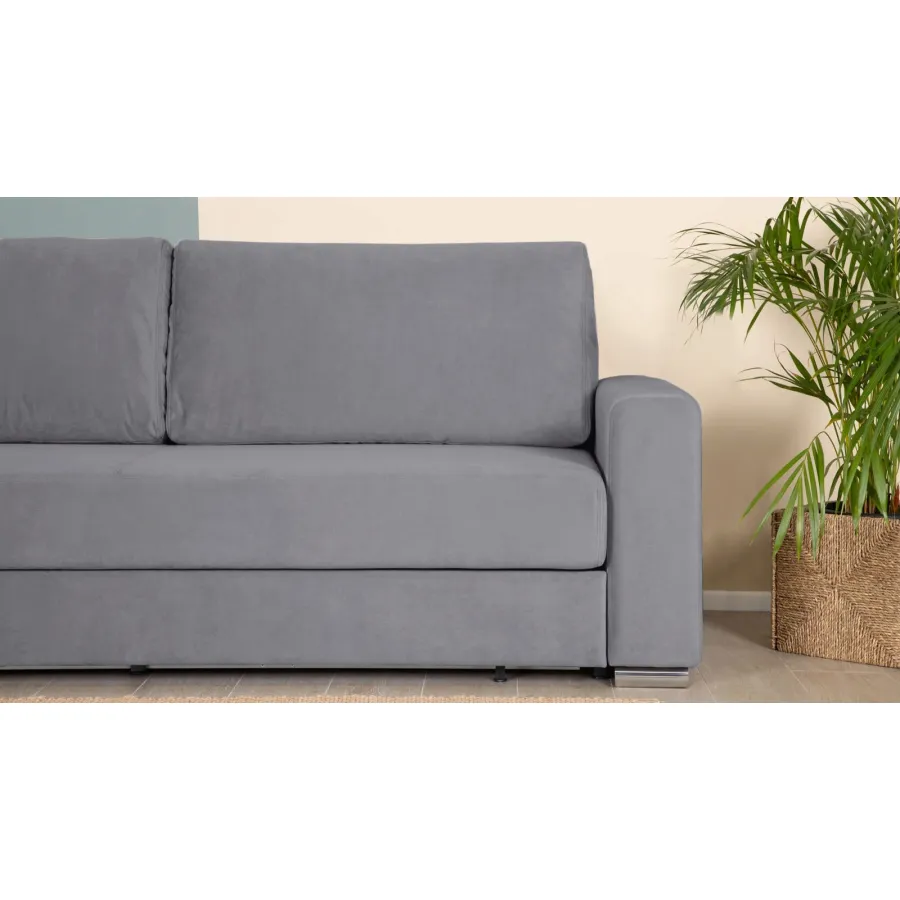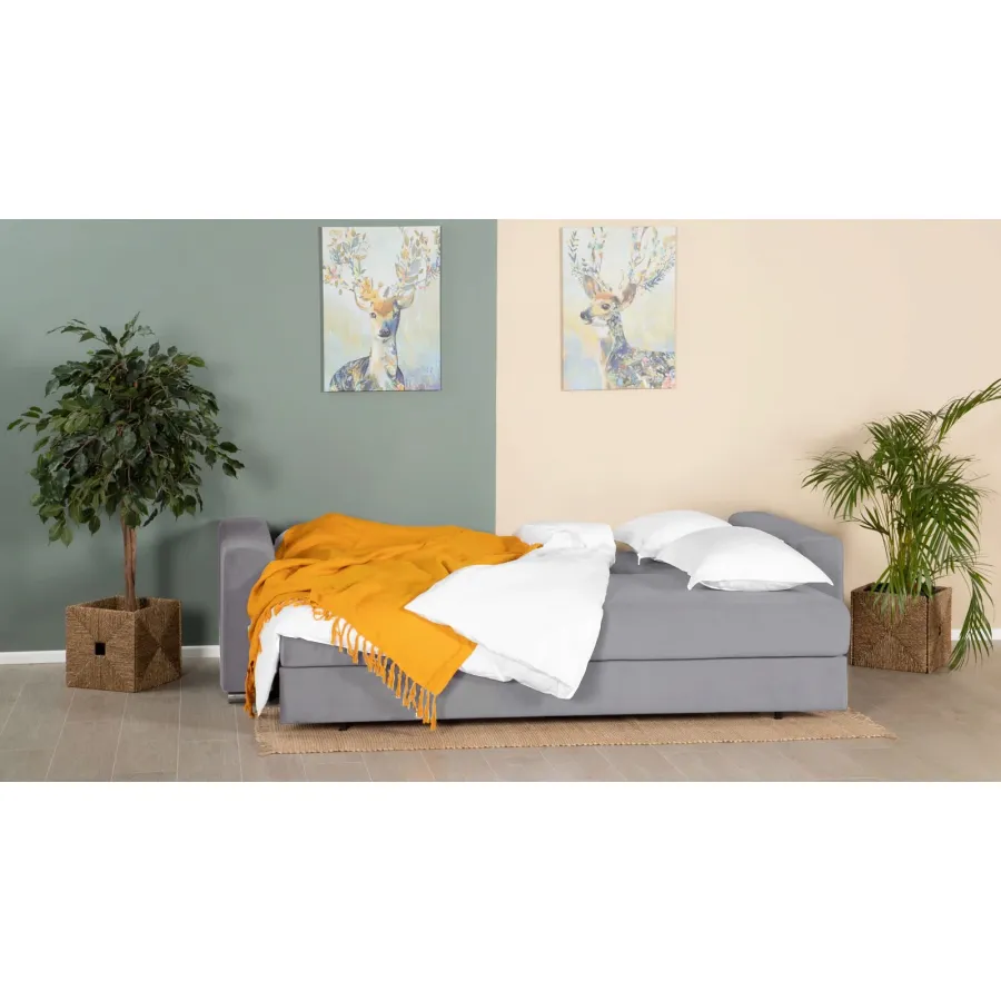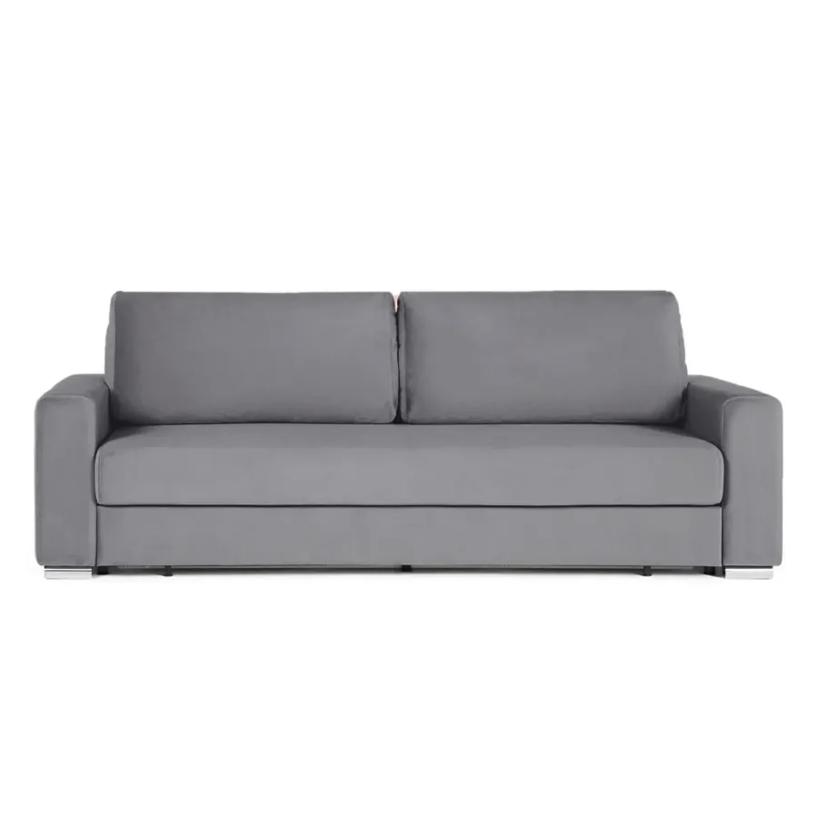 The Claus sofa bed is a versatile piece of furniture that seamlessly combines the comfort of a sofa with the functionality of a full bed, complete with a high anatomical mattress. This sofa bed features a high anatomical mattress with an independent spring block and a metal base, ensuring a resilient landing and providing a comfortable sleeping experience. The mattress's design facilitates the correct and uniform distribution of the body's load, enhancing overall comfort during sleep. The backrest of the sofa bed is crafted from high-quality fabric, making it an ideal choice for room zoning. Additionally, it includes a spacious storage space, offering a reliable room solution for all bedding essentials.